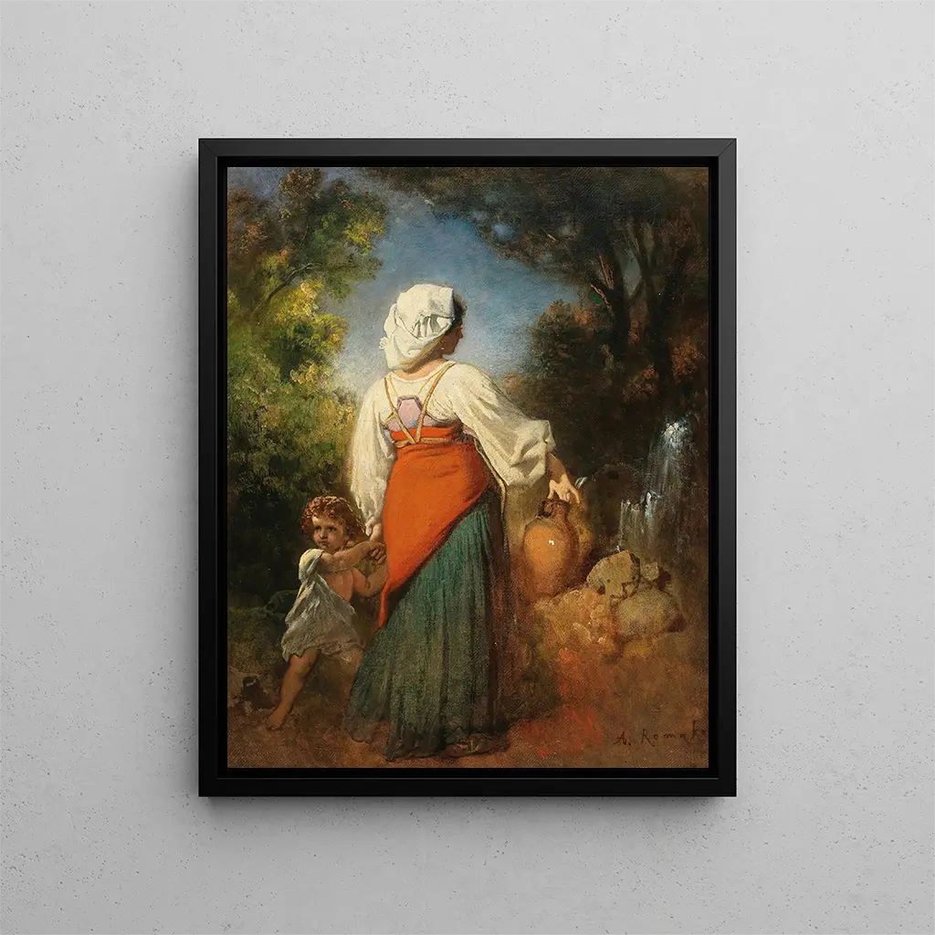 Kunstdruck | Italienisches Mädchen mit Kind an der Fontaine - Anton Romako
