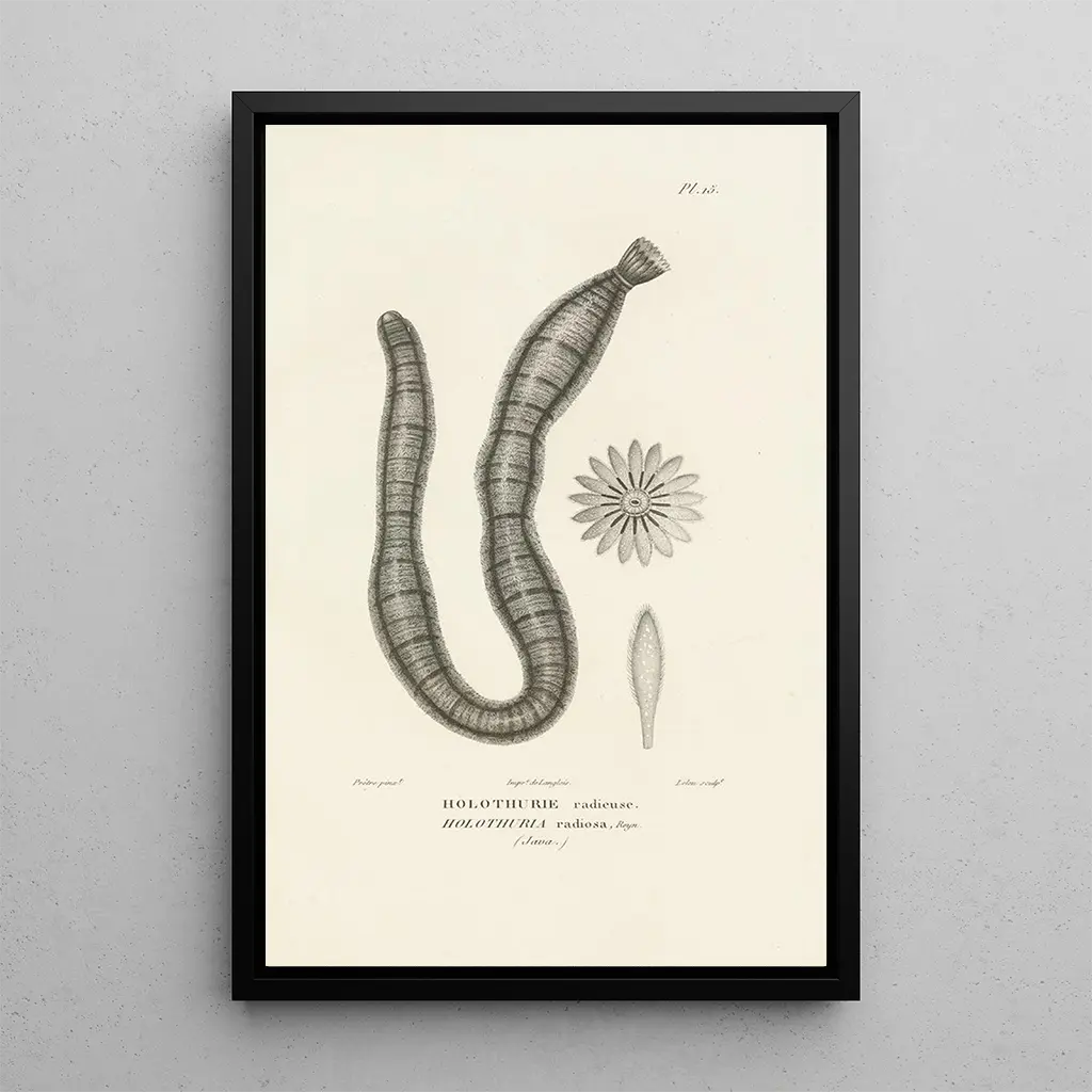 Die reproduction der Centurie zoologique Pl15 von René Primevère Lesson ist eine wahre Hommage an die Vielfalt der Tierwelt. Dieses Werk, reich an Details, zeigt eine Vielzahl von Arten, jede sorgfältig mit bemerkenswerter Präzision illustriert. Die lebendigen Farben und zarten Nuancen verleihen den dargestellten Kreaturen neues Leben und schaffen eine Atmosphäre, die sowohl lehrreich als auch poetisch ist. Die feinen Linien und subtilen Schatten zeugen von der technischen Meisterschaft des Künstlers und laden den Betrachter ein, in eine Welt einzutauchen, in der die Natur mit Eleganz in Szene gesetzt wird.