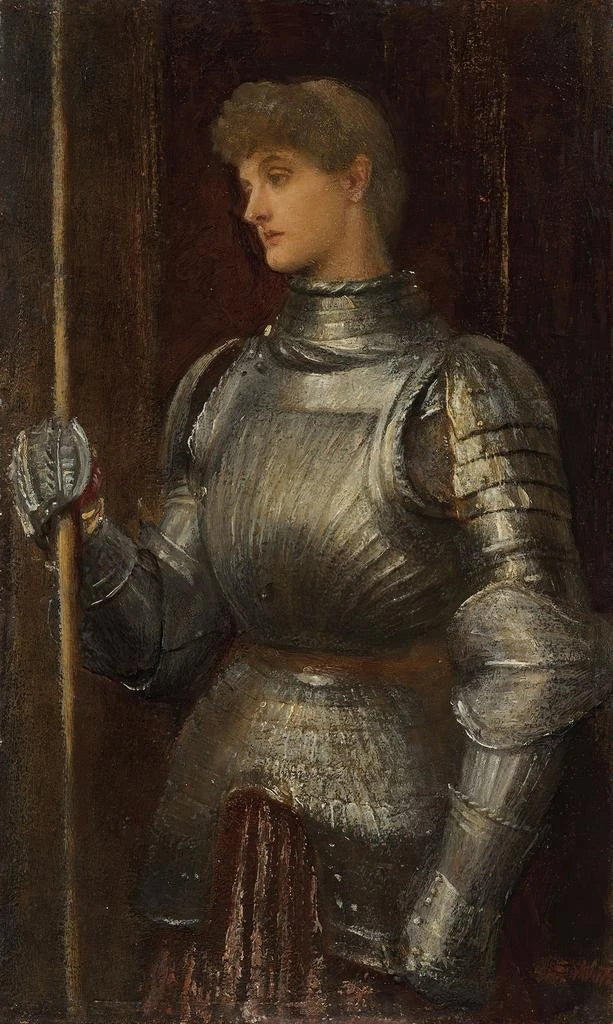 George Frederic Watts, geboren 1817, ist ein britischer Maler und Bildhauer, der für seine bedeutende Rolle in der symbolistischen Bewegung bekannt ist. Beeinflusst von Romantik und den spirituellen Ideen seiner Zeit, suchte Watts, universelle Wahrheiten durch seine Kunst auszudrücken. Seine Karriere erstreckt sich über mehrere Jahrzehnte, in denen er ikonische Werke schuf, die den menschlichen Zustand hinterfragen. Indem er Jeanne d'Arc als Motiv wählte, beleuchtet Watts die Themen Glauben, Opfer und den Kampf für Gerechtigkeit – Werte, die im historischen Kontext des 19. Jahrhunderts tief resonieren.