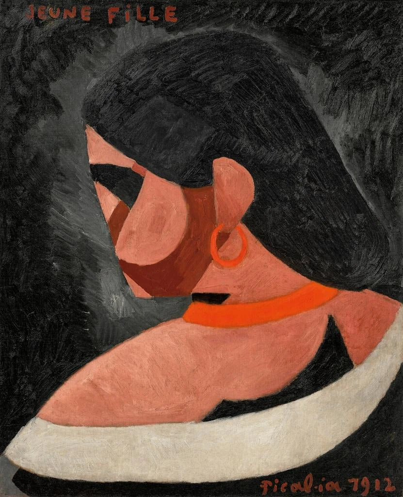"Jeune fille" zeichnet sich durch seinen innovativen Ansatz und seine einzigartige Ästhetik aus. Das Werk verbindet Elemente des Kubismus und Surrealismus und spielt mit Formen und Farben auf eine Weise, die die künstlerischen Konventionen seiner Zeit herausfordert. Die Figur des Mädchens, zugleich stilisiert und abstrakt, vermittelt ein Gefühl von Bewegung und Fließfähigkeit, als würde sie kurz davorstehen, aus dem Rahmen zu entkommen. Die lebendigen Töne und die auffälligen Kontraste verstärken die visuelle Wirkung der Komposition und schaffen eine Atmosphäre, die sowohl träumerisch als auch dynamisch ist. Picabia gelingt es durch seinen mutigen Einsatz von Farbe und Form, die reine Darstellung zu transzendieren und eine emotionale Erfahrung zu bieten, bei der jeder Blick eine neue Nuance von Bedeutung offenbart.