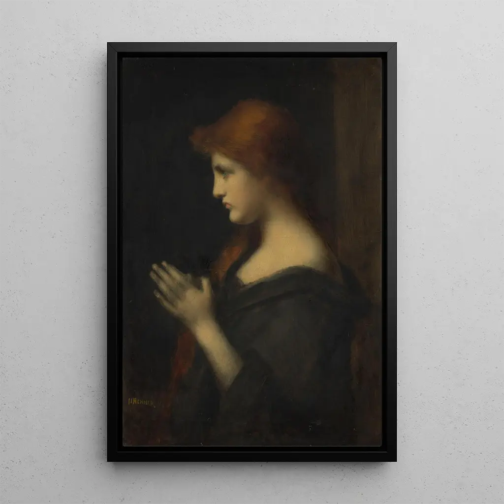 Junge Frau im Gebet: eine spürbare Gelassenheit „Junge Frau im Gebet“ von Jean-Jacques Henner ist ein Werk, das den inneren Frieden und die Hingabe evoziert. Dieses Gemälde, ausgeführt mit einer raffinierten Technik, zeigt eine junge Frau, die in einem Moment der Andacht versunken ist. Die sanften Farben und die zarten Nuancen der Haut schaffen eine ruhige Atmosphäre, während das Licht den Eindruck erweckt, das Subjekt mit einer heiligen Aura zu umhüllen. Die Haltung der Frau, die gefalteten Hände und der Blick gen Himmel, vermitteln eine tiefe Emotion und laden den Betrachter ein, diesen Moment der Spiritualität zu teilen. Jean-Jacques Henner: ein Künstler im Herzen der akademischen Bewegung Jean-Jacques Henner, geboren 1829, ist ein französischer Maler, der das 19. Jahrhundert mit seinen Porträts und Genreszenen prägte. In einem künstlerischen Umfeld aufgewachsen, wurde er von romantischen und symbolistischen Strömungen beeinflusst. Henner gewann zahlreiche Preise, darunter den prestigeträchtigen Prix de Rome, was ihm ermöglichte, seine Kunst in Italien weiterzuentwickeln. „Junge Frau im Gebet“ zeugt von seinem Talent, Weiblichkeit sowohl zart als auch spirituell darzustellen, und fügt sich in die akademische Tradition seiner Zeit ein. Eine dekorative Anschaffung mit vielfältigen Vorzügen Der Kunstdruck von „Junge Frau im Gebet“ ist eine wertvolle Ergänzung jeder Innendekoration, sei es im Wohnzimmer, Büro oder Schlafzimmer. Seine Druckqualität und die Treue zum Originalwerk machen ihn zur idealen Wahl für alle, die einen künstlerischen Akzent suchen. Dieses Gemälde, mit seiner Botschaft von Frieden und Gelassenheit, wird Ihren Raum verschönern und gleichzeitig eine kontemplative Dimension hinzufügen. Mit dieser Leinwand schenken Sie Ihrem Interieur ein Kunstwerk, das inspiriert und den Geist erhebt.