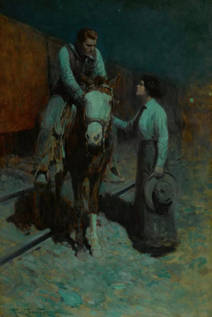 Gemälde Junge Frau und Cowboy - Frank Tenney Johnson | Kunstdruck