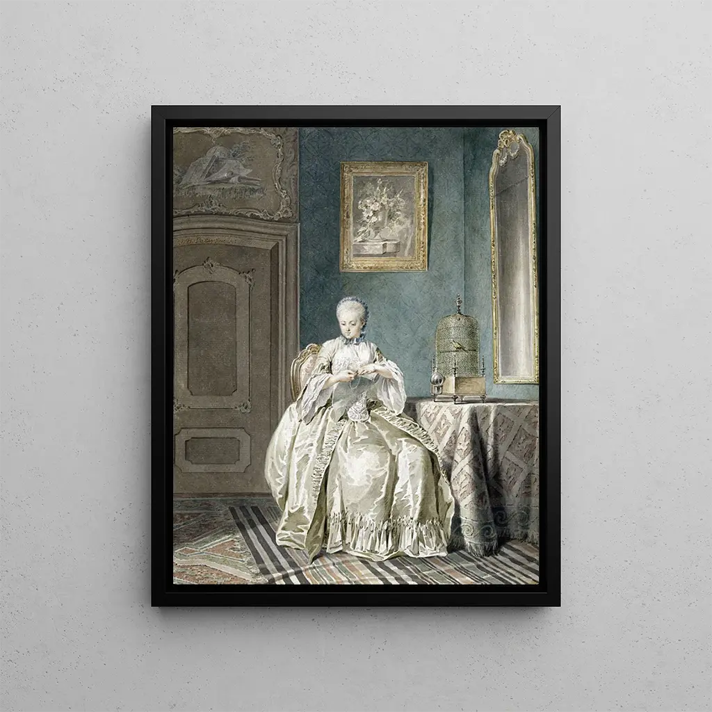 Jacobus Buys, ein niederländischer Künstler des 18. Jahrhunderts, ist bekannt für seine Szenen des Genres und seine Porträts des Alltagslebens. In 'Junge Stickerei' fängt er die Anmut und Konzentration eines jungen Mädchens bei der Arbeit ein, wobei er ein weiches Licht verwendet, um die Details des Stoffes und die zarten Gesichtsausdrücke hervorzuheben. Dieses Werk zeigt eine besondere Sensibilität für die Schönheit alltäglicher Gesten und ehrt das häusliche Leben. Der Stil von Buys, sowohl realistisch als auch poetisch, findet seinen Platz in modernen Innenräumen und verleiht ihnen eine Note von Menschlichkeit und Wärme. Entdecken Sie die kunstdruck-Reproduktion dieses Werks auf Artem Legrand.