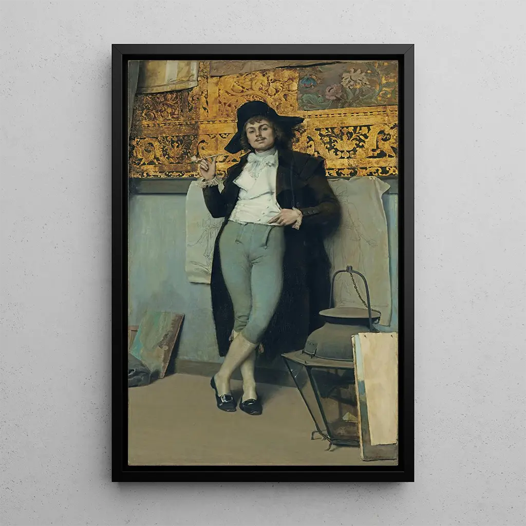 Jeune homme à la pipe : eine Reflexion über Jugend und Kontemplation "Jeune homme à la pipe" ist ein fesselndes Werk von Hippolyte Dominique Berteaux, das zur Reflexion und Kontemplation einlädt. Das Gemälde zeigt einen jungen Mann, der mit einer Pfeife in der Hand sitzt und in seine Gedanken vertieft ist. Die sanften Farben und zarten Nuancen schaffen eine ruhige, fast melancholische Atmosphäre. Das Licht spielt eine entscheidende Rolle, hebt die Gesichtszüge des jungen Mannes hervor und betont die Intimität dieses Moments der Einsamkeit. Die Technik von Berteaux, die Feinheit und Realismus verbindet, ermöglicht es, die Intensität der Emotionen zu spüren, die von dieser Szene ausgehen. Hippolyte Dominique Berteaux: ein Künstler des 19. Jahrhunderts, der neu entdeckt werden sollte Hippolyte Dominique Berteaux, aktiv im 19. Jahrhundert, wird oft mit der realistischen Bewegung in Verbindung gebracht. Sein Werk zeichnet sich durch eine besondere Aufmerksamkeit für Details und die Fähigkeit aus, die Essenz seiner Motive einzufangen. Beeinflusst von den künstlerischen Strömungen seiner Zeit, verstand er es, Elemente des Alltagslebens in seine Gemälde zu integrieren, wodurch seine Werke zugänglich und berührend werden. "Jeune homme à la pipe" zeugt von seinem Talent, einfache, aber bedeutungsvolle Momente des Lebens darzustellen, die die Sorgen und Wünsche der Jugend seiner Zeit widerspiegeln. Eine dekorative Anschaffung mit vielfältigen Vorzügen Der Kunstdruck "Jeune homme à la pipe" ist ein ideales Dekorationsstück, um Ihrem Interieur einen Hauch von Eleganz zu verleihen. Ob im Wohnzimmer, Büro oder Schlafzimmer – dieses Leinwandbild wird die Blicke auf sich ziehen und Gespräche anregen. Die Druckqualität garantiert eine detailgetreue Wiedergabe des Originalwerks und bietet gleichzeitig eine raffinierte Ästhetik. Durch die Integration dieses Kunstwerks in Ihre Dekoration schaffen Sie eine Atmosphäre der Reflexion und Gelassenheit und feiern gleichzeitig das Talent eines Künstlers des 19. Jahrhunderts.
