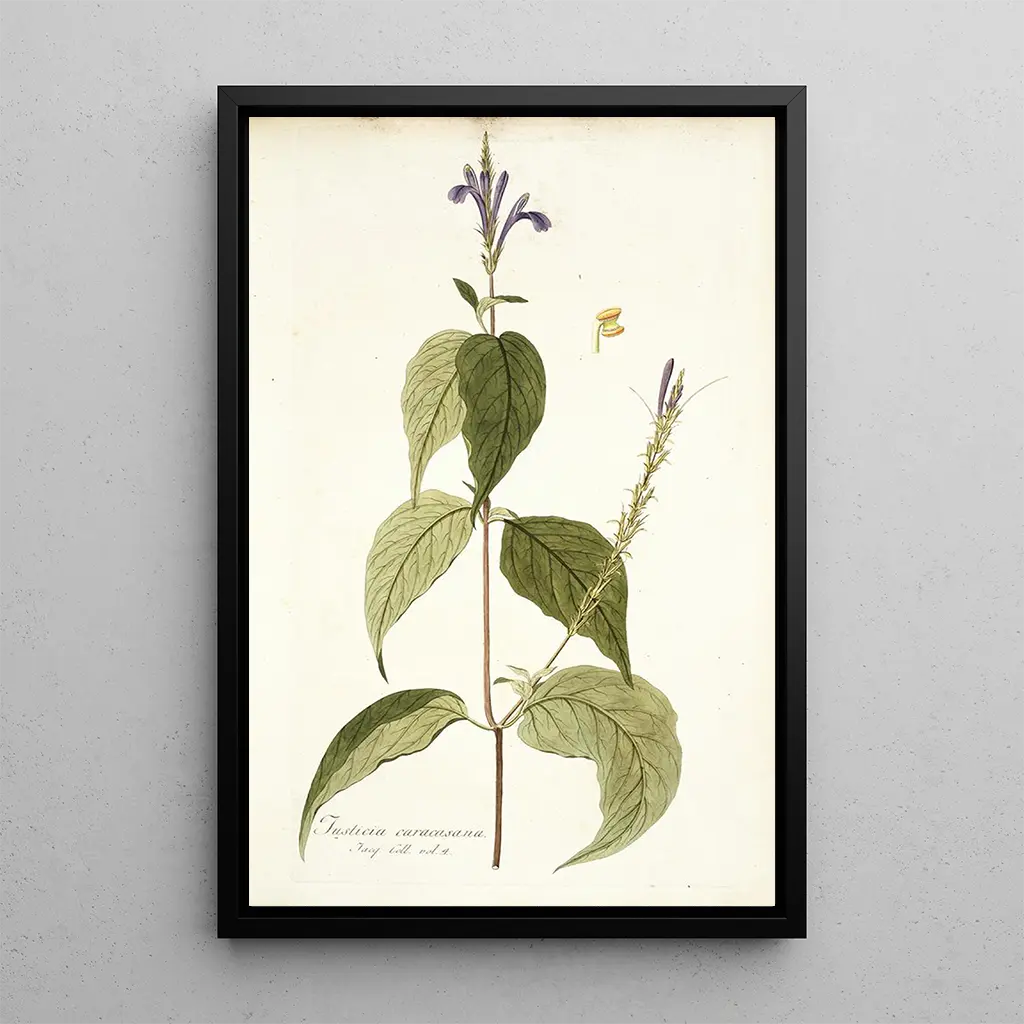 Justicia caracasana : eine Reise ins Herz der Biodiversität Die kunstdrucke von Justicia caracasana, geschaffen von Nikolaus Joseph Freiherr von Jacquin, entführen uns in eine üppige Welt, in der die Natur erblüht. Dieses Gemälde zeichnet sich durch seine leuchtenden Farbtöne und zarten Formen aus und stellt diese tropische Pflanze treu dar. Die Nuancen von tiefem Grün und lebhaftem Violett verbinden sich zu einer harmonischen und fesselnden Komposition. Die Aquarelltechnik, die Jacquin meisterhaft beherrscht, ermöglicht es, Licht und Textur mit bemerkenswerter Präzision wiederzugeben und den Betrachter die vergängliche Schönheit der Flora schätzen zu lassen. Nikolaus Joseph Freiherr von Jacquin : ein Künstler im Dienste der Wissenschaft Nikolaus Joseph Freiherr von Jacquin, Botaniker und Künstler des 18. Jahrhunderts, prägte seine Zeit durch präzise und poetische botanische Illustrationen. Seine Reisen nach Südamerika ermöglichten ihm, eine Vielzahl von Pflanzen zu entdecken, darunter die Justicia caracasana. Beeinflusst von den wissenschaftlichen Strömungen seiner Zeit, verstand es Jacquin, Kunst und Wissenschaft zu verbinden und so zum Fortschritt der botanischen Erkenntnisse beizutragen. Sein Werk ist ein Zeugnis der Bewunderung für die Natur und ihrer Bedeutung für den Erhalt, was ihn zu einer bedeutenden Figur der botanischen Illustration macht. Eine dekorative anschaffung mit vielfältigen vorteilen Der kunstdruck von Justicia caracasana ist ein dekoratives Stück, das Ihren Wohnraum bereichern wird, sei es im Wohnzimmer, Büro oder Schlafzimmer. Seine Druckqualität und Detailtreue machen es zu einem fesselnden Bild, das das Auge anzieht und Bewunderung hervorruft. Durch die Integration dieses Leinwandbildes in Ihre Dekoration verleihen Sie Ihrem Raum eine Note von Eleganz und Frische und feiern gleichzeitig die Schönheit der Biodiversität. Seine ästhetische Anziehungskraft und seine Fähigkeit, eine beruhigende Atmosphäre zu schaffen, machen es zur idealen Wahl für alle, die ihr Interieur mit einem einzigartigen Kunstwerk verschönern möchten.