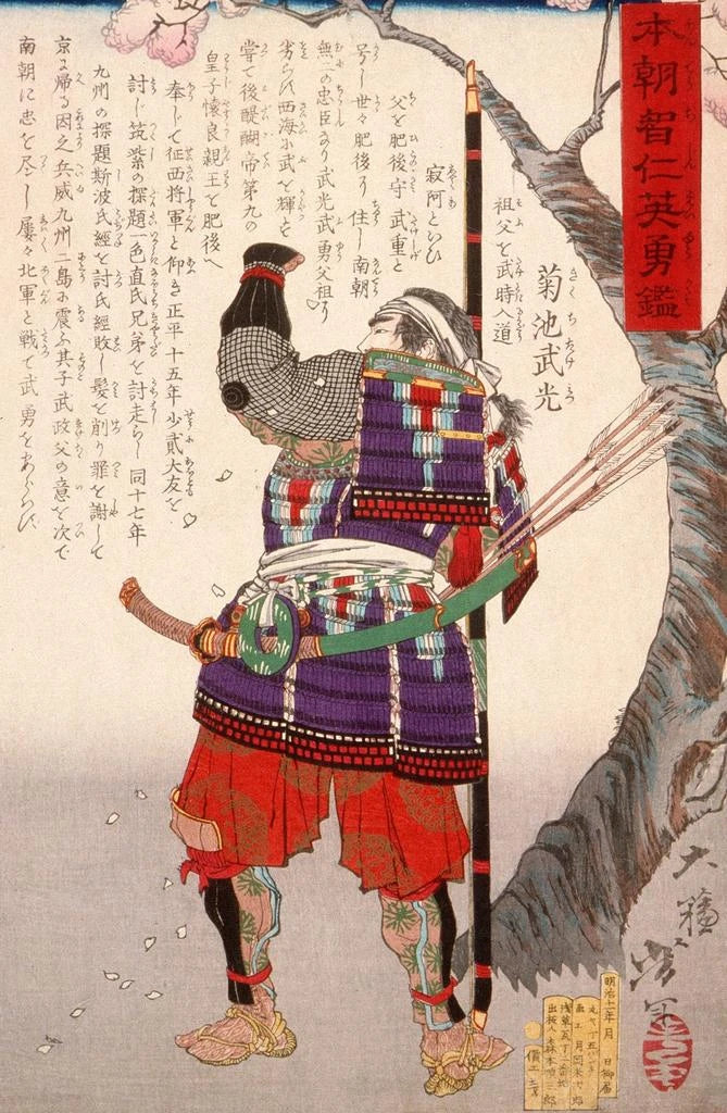 Reproduktion | Kikuchi Takemitsu stehend neben einem Kirschbaum - Tsukioka Yoshitoshi
