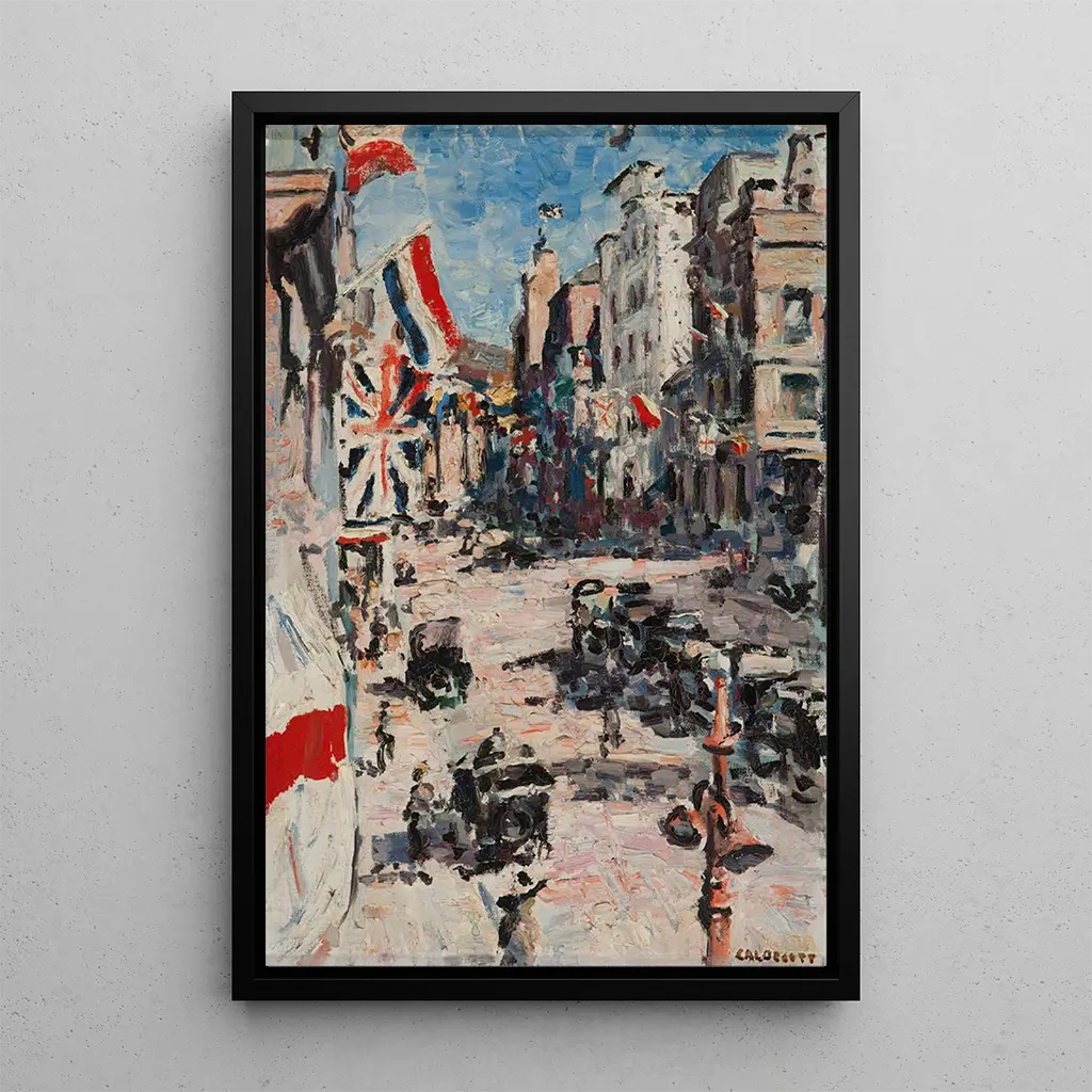 Visite royale 1925 : ein eingefrorener Moment in der Zeit Die kunstdrucke von "Visite royale 1925" von Harry Caldecott entführen uns in eine Szene von seltener Eleganz. Die Figuren, gekleidet in historische Kostüme, scheinen unter den aufmerksamen Blicken eines unsichtbaren Publikums zum Leben zu erwachen. Die reichen und tiefgründigen Farben, die Rottöne und Goldnuancen vermischen, schaffen eine Atmosphäre, die sowohl festlich als auch feierlich ist. Die technik von Caldecott, die Präzision und Flüssigkeit verbindet, erweckt jedes Detail zum Leben, von den Drapierungen der Kleidung bis zu den Gesichtsausdrücken. Dieses bild erinnert an eine Epoche, in der die königlichkeit gleichbedeutend mit Größe und Spektakel war, und lädt den Betrachter zu einer nostalgischen Betrachtung ein. Harry Caldecott : ein meister des britischen Realismus Harry Caldecott, aktiv zu Beginn des 20. Jahrhunderts, ist bekannt für seine Fähigkeit, Momente des Alltagslebens mit einem Hauch von Größe einzufangen. Beeinflusst vom künstlerischen bewegung des Realismus, verstand er es, Tradition und Moderne in seinen werken zu vereinen. Seine arbeit spiegelt die sozialen und kulturellen Veränderungen seiner zeit wider, insbesondere den aufstieg der mittelklasse und das wachsende interesse an öffentlichen veranstaltungen. Caldecott wurde auch von seinen zeitgenossen beeinflusst und integrierte elemente des Impressionismus, blieb dabei jedoch seinem eigenen stil treu. Sein beitrag zur britischen kunst ist unbestreitbar, und "Visite royale 1925" ist ein beispiel dafür. Eine dekorative anschaffung mit vielfältigen vorteilen Der kunstdruck von "Visite royale 1925" ist ein dekoratives stück, das Ihr interieur bereichern wird, sei es im wohnzimmer, büro oder schlafzimmer. Die druckqualität garantiert eine bemerkenswerte treue zu den details des originalwerks, sodass Sie seine ästhetische anziehungskraft im alltag genießen können. Dieses bild, mit seiner historie- und kulturgeladenen atmosphäre, wird zum zentralen punkt in jedem raum, der bewunderung und gespräche hervorruft. Mit der wahl dieses leinwandbildes entscheiden Sie sich für ein werk, das schönheit und tiefgang vereint und gleichzeitig eine zeitlose eleganz in Ihre dekoration bringt.