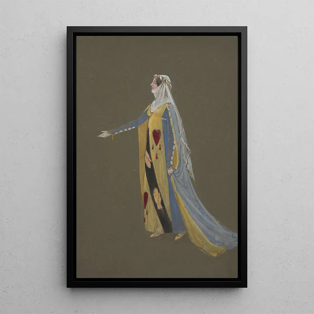 Die "Konzeption eines Kostüms" von Walter Crane ist ein Werk, das eine Welt voller Kreativität und Raffinesse evoziert. Die lebendigen Farben und die zarten Muster verschmelzen harmonisch und schaffen eine Atmosphäre, die sowohl fröhlich als auch träumerisch ist. Die minutösen Details der Kostüme, mit ihren Drapierungen und Verzierungen, laden den Betrachter ein, in eine Welt einzutauchen, in der Kunst und Mode aufeinandertreffen. Jedes Element dieses Gemäldes scheint eine Geschichte zu erzählen und fängt das Wesen einer Epoche ein, in der Ästhetik im Mittelpunkt der Gesellschaft stand. Dieser kunstdruck ist eine wahre Ode an die Fantasie und feiert die Kunst des Kostüms in ihrer ganzen Pracht.