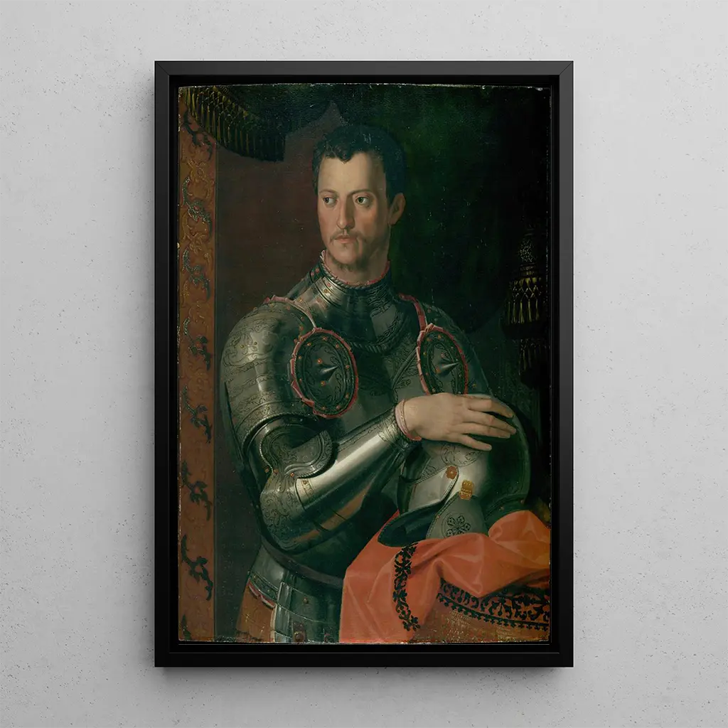 Cosme Ier de Médicis : ein Porträt von Macht und Majestät Das Gemälde "Cosme Ier de Médicis" von Agnolo Bronzino ist ein ikonisches Werk der italienischen Renaissance. Dieses Porträt, mit bemerkenswerter Präzision gefertigt, zeigt den Herzog Cosme Ier in einer majestätischen Haltung, umgeben von Symbolen seiner Macht. Die reichen und tiefgründigen Farben, die von leuchtendem Rot bis zu dunklem Grün reichen, schaffen eine Atmosphäre, die sowohl feierlich als auch dynamisch ist. Die Ölmaltechnik ermöglicht detaillierte Feinheiten, insbesondere bei der Darstellung der Texturen von Kleidung und Ornamenten. Das Werk lädt zu einer Betrachtung der Werte von Adel und Größe ein und offenbart gleichzeitig die komplexe Persönlichkeit seines Subjekts. Agnolo Bronzino : der Meister des Porträts am Hof der Médicis Agnolo Bronzino, einer der einflussreichsten Künstler der Renaissance, konnte die Essenz des Adels durch seine Porträts einfangen. Hauptsächlich in Florenz tätig, war er der offizielle Maler des Hofes der Médicis, was ihm erlaubte, einen einzigartigen Stil zu entwickeln, der durch elegante Linien und eine raffinierte Farbpalette gekennzeichnet ist. Bronzino wurde von den Werken Michelangelos und Raffaels beeinflusst, schuf jedoch seine eigene künstlerische Identität. Seine Arbeit, insbesondere dieses Porträt von Cosme Ier, zeugt von der Bedeutung der Darstellung von Macht und Reichtum in dieser Zeit, wobei er Elemente der florentinischen humanistischen Kultur integriert. Eine dekorative Anschaffung mit vielfältigen Vorzügen Der Kunstdruck des Gemäldes "Cosme Ier de Médicis" ist ein dekoratives Stück, das jeden Raum bereichern wird, sei es ein Wohnzimmer, ein Büro oder ein Schlafzimmer. Die Qualität des Kunstdrucks garantiert eine Treue zu den Details und Farben des Originalwerks, sodass man den ästhetischen Reiz dieses Meisterwerks zuhause genießen kann. Durch die Integration dieses Bildes in Ihre Dekoration verleihen Sie Ihrem Raum einen Hauch von Geschichte und Raffinesse und wecken gleichzeitig die Bewunderung Ihrer Gäste. Dieses ikonische Porträt ist nicht nur ein dekoratives Element, sondern auch eine Einladung, das künstlerische Erbe der italienischen Renaissance zu erkunden.