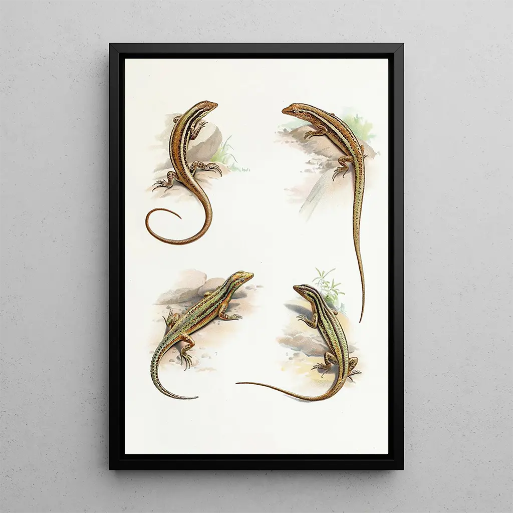 In dieser kunstdruckversion von Cryptoblepharus fängt der Künstler Thomas Barbour die faszinierende Essenz dieses Reptils ein. Die detaillierten Feinheiten der Haut, mit ihren zart wiedergegebenen Schuppen, schaffen eine fast lebendige Atmosphäre. Die Nuancen von Grün und Braun verschmelzen harmonisch und erinnern an die natürlichen Lebensräume des Tieres. Das Licht spielt auf den Oberflächen, hebt die Textur und die Tiefe des Werks hervor. Barbour gelingt es, ein Gefühl von Ruhe und Neugier zu vermitteln und den Betrachter einzuladen, die oft vernachlässigte Schönheit der reptilischen Kreaturen zu bewundern.