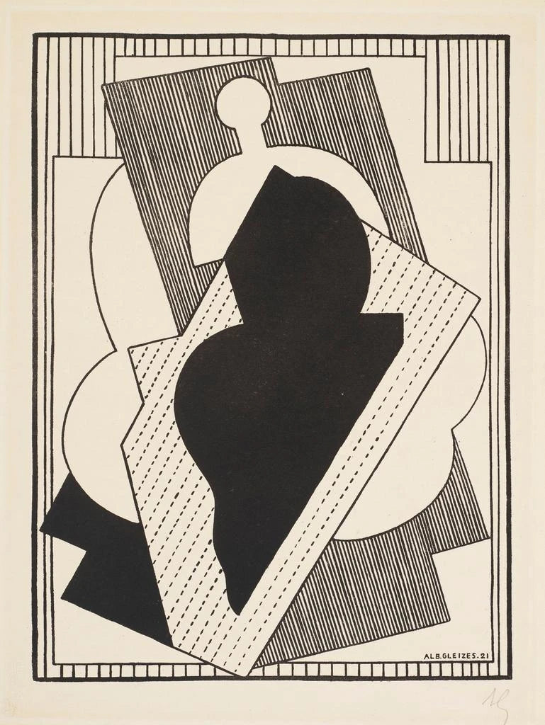 Der kubistische Stil von Albert Gleizes zeigt sich in dieser Komposition durch eine Gegenüberstellung geometrischer Formen und eine sorgfältig ausgewählte Farbpalette. Die Flächen verschlingen sich und überlagern sich, was eine Tiefe und Komplexität offenbart, die zu einer sorgfältigen Erkundung einlädt. Die Zentralität des Schwarz, allgegenwärtig in diesem Werk, schafft einen eindrucksvollen Kontrast zu den helleren Tönen und verleiht der Gesamtheit eine paradoxe Harmonie zwischen Leichtigkeit und Dichte. Der Blick des Betrachters wird durch ein Spiel aus Linien und Formen geführt, die nicht nur ein Objekt darstellen, sondern dessen multiple Dimensionen erforschen. Gleizes gelingt es so, ein immersives visuelles Erlebnis zu schaffen, bei dem jedes Detail zur Gesamterzählung des Werks beiträgt.