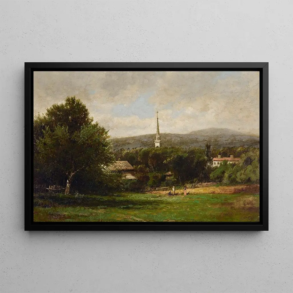 Landschaft mit Kirche : eine Harmonie zwischen Natur und Architektur In "Landschaft mit Kirche" bietet uns der Künstler eine idyllische Vision, in der Natur und Architektur in perfekter Harmonie zusammentreffen. Die sanften Töne von Grün und Blau erinnern an einen ruhigen Himmel, während die Kirche mit ihrem schlanken Turm majestätisch inmitten der Landschaft steht. Die Komposition ist sorgfältig ausbalanciert, jedes Element wird präzise platziert, um eine friedliche Atmosphäre zu schaffen. Die Maltechnik, wahrscheinlich Öl, ermöglicht es, das Licht fast greifbar darzustellen und den Betrachter einzuladen, in diese idyllische Szene einzutauchen. Landschaft mit Kirche : ein Zeugnis der ländlichen Kunst Der Künstler von "Landschaft mit Kirche" ist ein emblematischer Vertreter der ländlichen Bewegung, die im 19. Jahrhundert aufkam. Dieser Stil zeichnet sich durch eine Feier der Natur und des Landlebens aus, oft im Gegensatz zur zunehmenden Urbanisierung der Zeit. Beeinflusst von Meistern wie Claude Lorrain und John Constable, versucht der Künstler, die Schönheit natürlicher Landschaften einzufangen und gleichzeitig architektonische Elemente zu integrieren. Seine Fähigkeit, Emotionen durch einfache, aber ausdrucksstarke Szenen hervorzurufen, macht ihn zu einem bedeutenden Akteur seiner Zeit, und dieses Werk ist ein perfektes Beispiel dafür. Eine dekorative Anschaffung mit vielfältigen Vorteilen Die Wahl eines kunstdrucks von "Landschaft mit Kirche" für Ihre Inneneinrichtung ist eine ausgezeichnete Idee, um einen Hauch von Ruhe und Eleganz zu verleihen. Ob im Wohnzimmer, Büro oder Schlafzimmer – dieses Bild bereichert den Raum mit seiner zeitlosen Schönheit. Die Qualität des kunstdrucks garantiert eine Treue zum Originalwerk, sodass Sie jedes Detail und jede Farbnuance genießen können. Seine ästhetische Anziehungskraft macht ihn zur idealen Wahl für alle, die eine beruhigende und inspirierende Atmosphäre in ihrem Zuhause schaffen möchten. Mit diesem Leinwandbild fügen Sie ein Stück hinzu, das die Gelassenheit und die Schönheit der Natur widerspiegelt.