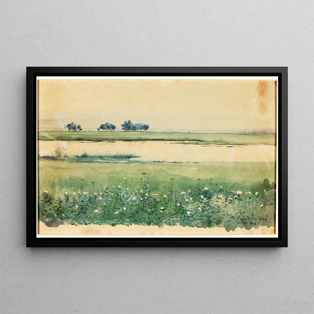 Paysage avec marais : eine Harmonie zwischen Natur und Gelassenheit In dieser kunstdruck-Version des Gemäldes Paysage avec marais entführt uns De Lancey Gill in eine friedliche Welt, in der die Natur aufblüht. Die sanften Farben und die Grüntöne verschmelzen harmonisch und schaffen eine beruhigende Atmosphäre. Die Technik von Gill, gekennzeichnet durch zarte Pinselstriche, erweckt jedes Element der Landschaft zum Leben, von den Reflexionen im Wasser bis zu üppigem Laub. Dieses Kunstwerk lädt zur Betrachtung ein und bietet dem Betrachter einen Moment der Ruhe, wie ein geöffnetes Fenster zu einer idyllischen Welt. De Lancey Gill: ein Meister der amerikanischen Landschaftsmalerei De Lancey Gill, aktiv zu Beginn des 20. Jahrhunderts, ist bekannt für seine ausdrucksstarken Landschaften, die das Wesen der amerikanischen Natur einfangen. Beeinflusst vom Impressionismus, entwickelte er einen einzigartigen Stil, der Realismus und Poesie verbindet. Seine Werke, oft inspiriert von den Landschaften Neuenglands, zeugen von einer besonderen Sensibilität für Licht und Farbe. Gill spielte eine bedeutende Rolle in der Entwicklung der Landschaftsmalerei in Amerika und trug dazu bei, die Natur als künstlerisches Sujet zu würdigen. Eine dekorative Anschaffung mit vielfältigen Vorzügen Der kunstdruck des Gemäldes Paysage avec marais ist ein dekoratives Stück, das sich perfekt in verschiedene Räume integriert, sei es im Wohnzimmer, Büro oder Schlafzimmer. Seine Druckqualität und die Treue zu den Originalfarben machen ihn zur idealen Wahl für alle, die ihr Interieur bereichern möchten. Mit seinem unbestreitbaren ästhetischen Reiz verleiht diese Leinwand jedem Dekor eine Note von Gelassenheit und Eleganz, lädt zum Träumen und Entfliehen ein bei jedem Blick.
