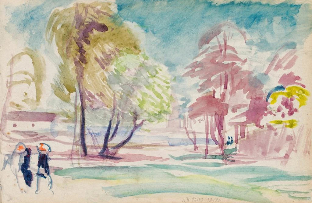 Landschaft und Figuren, Skizze - Magnus Enckell
