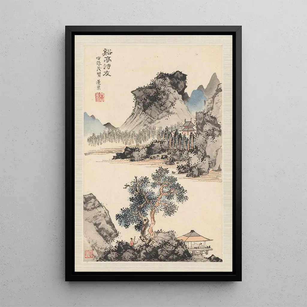 Der Kunstdruck dieses Gemäldes, Paysages d'après les anciens maîtres Pl5, ist eine ideale Dekorationswahl für verschiedene Räume wie Wohnzimmer, Büro oder Schlafzimmer. Seine Druckqualität und die Treue zum Originalwerk garantieren eine ästhetische Darstellung, die alle Blicke auf sich ziehen wird. Durch die Integration dieses Leinwandbildes in Ihr Zuhause verleihen Sie Ihrem Interieur einen Hauch von Eleganz und Gelassenheit und feiern gleichzeitig die chinesische Tradition. Dieses Bild verschönert nicht nur eine Wand, sondern schafft auch eine Atmosphäre, die zum Nachdenken und zur Kontemplation einlädt, und macht Ihren Raum zu einer Oase des Friedens.