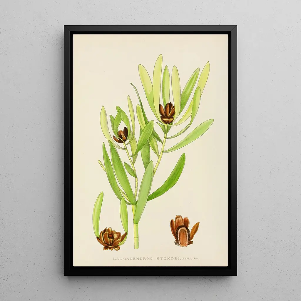 Der kunstdruck von Leucadendron stokoei ist ein dekoratives Stück, das jeden Raum verschönern kann, sei es im Wohnzimmer, im Büro oder im Schlafzimmer. Seine Druckqualität garantiert eine bemerkenswerte Treue zum Originalwerk und verleiht Ihrer Dekoration eine Prise Exotik und Frische. Mit seiner ästhetischen Anziehungskraft lädt dieses Bild zur Betrachtung und Flucht ein und macht jeden Blick zu einem Moment der Ruhe und des Staunens.