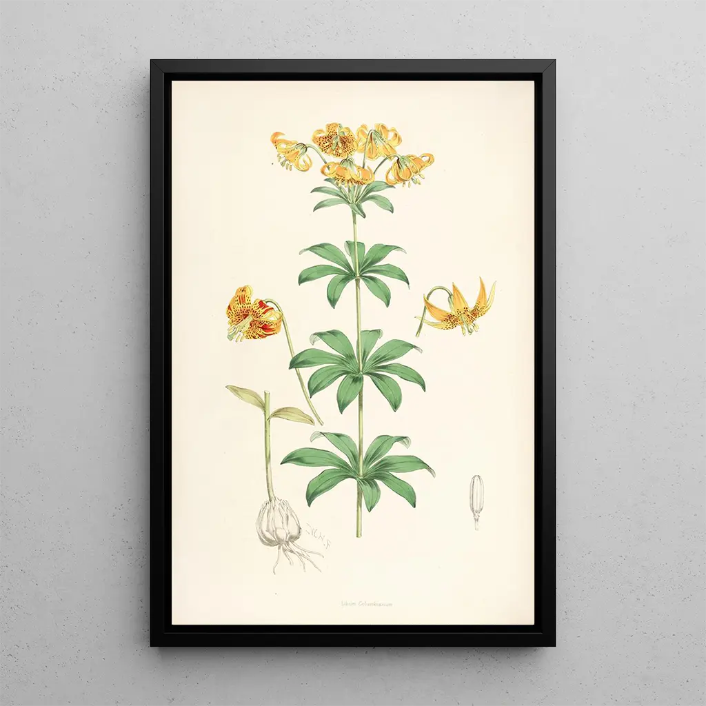 Lilium Columbianum : eine Ode an die wilde Flora Lilium Columbianum, illustriert von Walter Hood Fitch, ist ein Kunstdruck, der die Pracht der wilden Flora feiert. Dieses fesselnde Gemälde zeigt die Blume mit akribischer Liebe zum Detail und offenbart ihre lebendigen Farben und ihre anmutige Form. Die Nuancen von Gelb und Orange verschmelzen harmonisch und schaffen eine fröhliche und lebendige Atmosphäre. Die Technik von Fitch, die Aquarell und Zeichnung kombiniert, ermöglicht es, Licht und Schatten einzufangen und dieser wunderschönen Pflanze Leben einzuhauchen. Jeder Pinselstrich zeugt von seiner Liebe zur Natur und seinem Wunsch, diese Schönheit mit der Welt zu teilen. Walter Hood Fitch : ein Meister der botanischen Illustration Walter Hood Fitch gilt als einer der bedeutendsten botanischen illustratoren des 19. Jahrhunderts. Seine Karriere war geprägt von einer Leidenschaft für die Natur und dem Wunsch, Pflanzenarten mit unvergleichlicher Präzision zu dokumentieren. Beeinflusst von den wissenschaftlichen Entdeckungen seiner Zeit, konnte Fitch wissenschaftliche Genauigkeit mit künstlerischer Sensibilität verbinden. Seine Werke, darunter Lilium Columbianum, sind nicht nur Illustrationen, sondern auch Zeugnisse der Bedeutung der Biodiversität. Sein Erbe lebt durch seine Beiträge zur Botanik und Kunst weiter. Eine dekorative Anschaffung mit vielfältigen Vorzügen Der Kunstdruck von Lilium Columbianum ist eine dekorative Wahl, die sich perfekt in jeden Raum integriert, sei es Wohnzimmer, Büro oder Schlafzimmer. Die Druckqualität garantiert eine bemerkenswerte Treue zu den Details des Originalwerks, sodass Sie die Schönheit von Fitch voll genießen können. Mit seinem ästhetischen Reiz bringt dieses Bild einen Hauch von Natur und Ruhe in Ihr Zuhause. Sich für diesen Kunstdruck zu entscheiden, bedeutet, Ihre Dekoration mit einem Stück zu bereichern, das die Pracht der wilden Flora widerspiegelt.