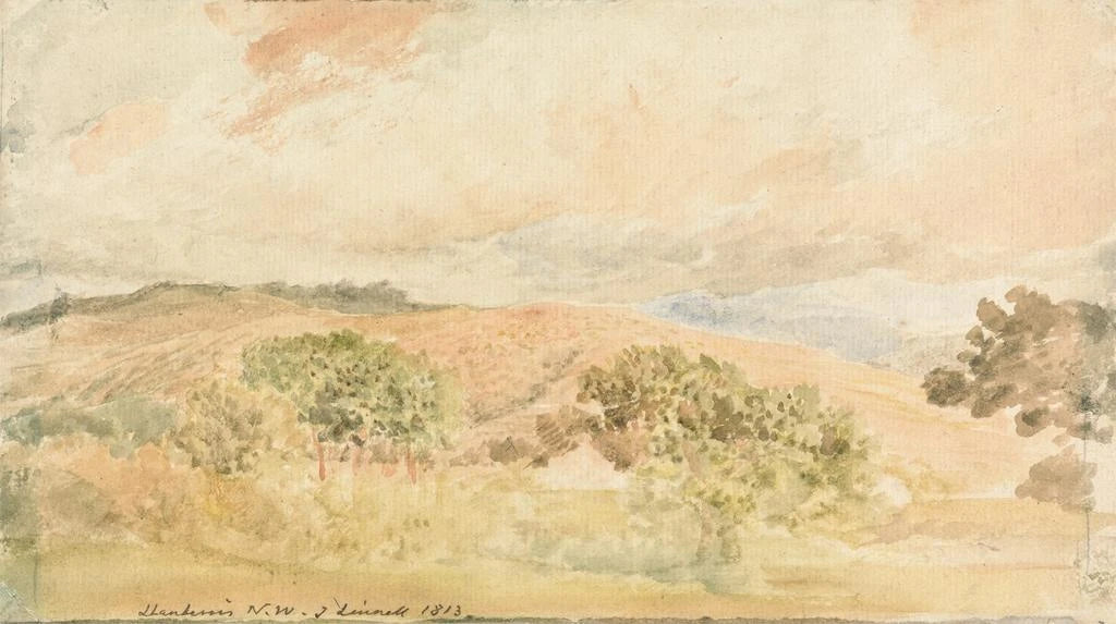 John Linnell, aktiv im 19. Jahrhundert, ist eine bedeutende Figur der britischen Romantikbewegung. Seine Werke, oft inspiriert von der Natur, offenbaren eine tiefe Sensibilität gegenüber den Landschaften, die er darstellt. Beeinflusst von Künstlern wie J.M.W. Turner, hat Linnell einen einzigartigen Stil entwickelt, der Realismus und Romantik verbindet. Seine Landschaften, von Poesie durchdrungen, spiegeln eine Suche nach Harmonie zwischen Mensch und Natur wider. Die Bedeutung seiner Arbeit liegt in seiner Fähigkeit, Emotionen hervorzurufen und den Betrachter an Orte voller Schönheit zu entführen.