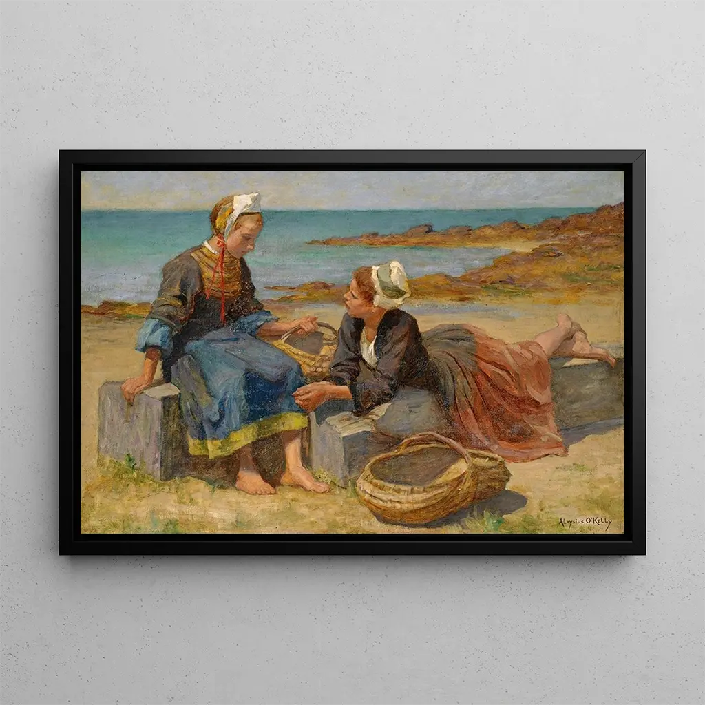 Filles bretonnes sur une plage : ein Gemälde voller Sanftheit und Nostalgie Die kunstdruck "Filles bretonnes sur une plage" von Aloysius O'Kelly zeigt eine ruhige und melancholische Szene, in der die Schönheit der bretonischen Landschaften mit der Einfachheit des Alltags verschmilzt. Die Pastellfarben und die zarten Nuancen der Kleider der jungen Mädchen schaffen eine visuelle Harmonie, die den Betrachter an die Küsten Bretagne versetzt. Die impressionistische Technik von O'Kelly, mit ihren fließenden Pinselstrichen, fängt das Licht und die maritime Atmosphäre ein und macht jedes Detail lebendig. Dieses Gemälde lädt zu einer kontemplativen Pause ein, bei der man fast das Murmeln der Wellen hören und die Meeresbrise spüren kann. Aloysius O'Kelly: ein Künstler im Herzen der Bretagne Aloysius O'Kelly, geboren 1850, ist ein irischer Maler, der seine Inspiration in den Landschaften und der Kultur der Bretagne fand. Im Wandel des frühen 20. Jahrhunderts hat er es verstanden, impressionistische Einflüsse zu integrieren und gleichzeitig einen persönlichen Stil zu entwickeln. Seine Leidenschaft für die Bretagne führte ihn dazu, ihre Landschaften und Bewohner zu verewigen und die Schönheit alltäglicher Szenen zu offenbaren. O'Kelly spielte eine wichtige Rolle bei der Förderung der bretonischen Kunst, und seine Werke, wie "Filles bretonnes sur une plage", zeugen von seiner Verbundenheit mit dieser Region und seinem Talent, die Essenz seiner Motive einzufangen. Eine dekorative Anschaffung mit vielfältigen Vorzügen Die Wahl des kunstdrucks "Filles bretonnes sur une plage" für Ihre Inneneinrichtung ist eine hervorragende Möglichkeit, eine Note von Gelassenheit und Eleganz zu verleihen. Dieses Gemälde passt perfekt in verschiedene Räume, sei es im Wohnzimmer, Schlafzimmer oder Büro, und schafft eine beruhigende Atmosphäre. Die Qualität des kunstdrucks garantiert eine Treue zu den Farben und Details des Originalwerks, während es gleichzeitig eine unbestreitbare ästhetische Anziehungskraft bietet. Durch die Hinzufügung dieses Leinwandbildes zu Ihrer Sammlung bereichern Sie Ihre Umgebung mit einem Kunstwerk, das die Schönheit und Einfachheit des bretonischen Lebens widerspiegelt und gleichzeitig Emotionen und Erinnerungen weckt.