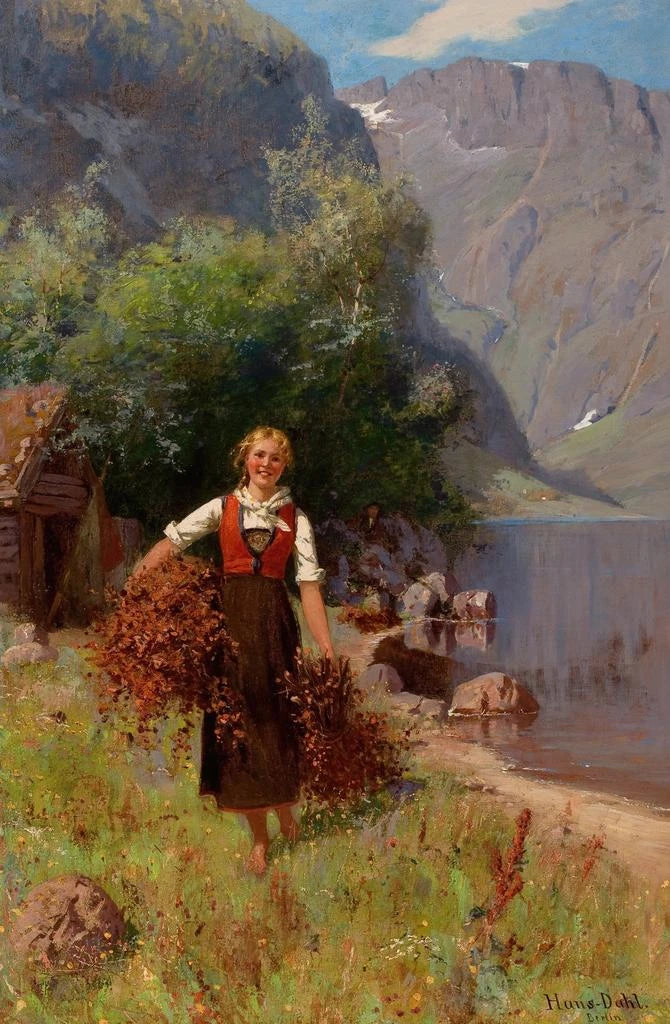 Gemälde Mädchen in einer Fjord-Landschaft - Hans Dahl | Kunstdruck
