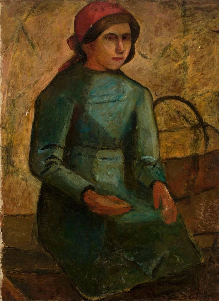 Kunstdruck | Mädchen in grünem Kleid mit Korb - Tadeusz Makowski