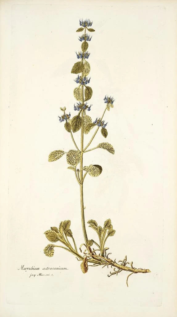 Nikolaus Joseph Freiherr von Jacquin, Botaniker und Illustrator des 18. Jahrhunderts, ist bekannt für seine Beiträge zur Wissenschaft und Kunst. Seine Reisen nach Südamerika und in die Karibik haben sein Wissen über Pflanzen bereichert, die er präzise in seinen Werken wiedergegeben hat. Marrubium astracanicum, wie auch andere seiner Illustrationen, zeugt von seinem Engagement, die Biodiversität zu dokumentieren. Durch die Kombination aus wissenschaftlicher Strenge und künstlerischer Sensibilität hat Jacquin ein wertvolles Erbe hinterlassen, das noch heute Künstler und Botaniker beeinflusst.