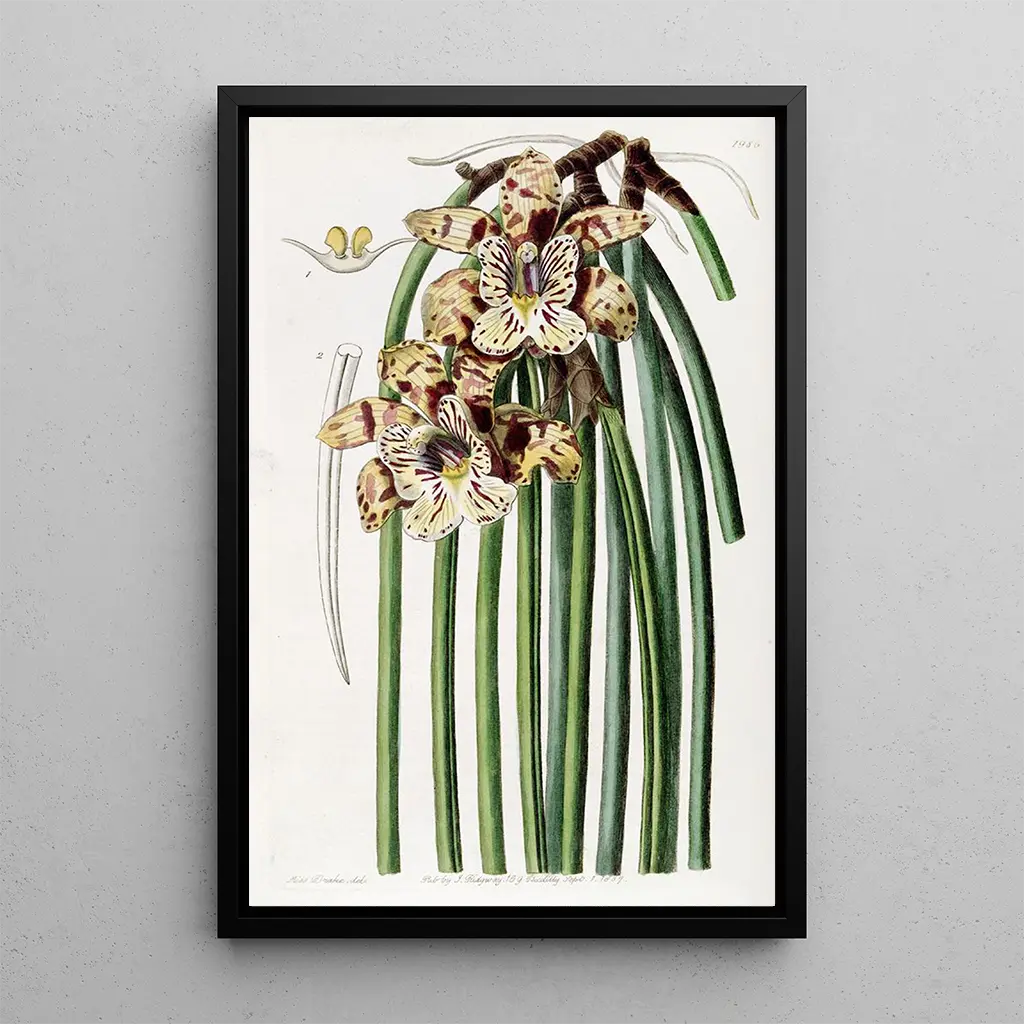 Maxillaria de M. Steels: eine Hommage an die florale Vielfalt Der kunstdruck "Maxillaria de M. Steels" ist ein faszinierendes Werk, das die Reichtum der Orchideen hervorhebt. Mit seinen warmen Farbtönen und zarten Formen zieht dieses Gemälde sofort den Blick auf sich. Sydenham Edwards gelingt es durch seine Aquarelltechnik, die Essenz dieser Blume einzufangen und faszinierende Details zu offenbaren, die auf seine sorgfältige Beobachtungsgabe hinweisen. Die Atmosphäre, die von diesem Werk ausgeht, ist sowohl ruhig als auch belebend und lädt zu einer längeren Betrachtung ein. Jeder Pinselstrich scheint eine Geschichte zu erzählen, die der vergänglichen Schönheit der Natur gewidmet ist. Sydenham Edwards: ein Meister der botanischen Illustration Sydenham Edwards ist eine ikonische Figur der botanischen Illustration des 19. Jahrhunderts. Seine Arbeit wurde durch die wissenschaftlichen Fortschritte seiner Zeit beeinflusst, und er verstand es meisterhaft, Kunst und Wissenschaft zu verbinden. Edwards arbeitete mit renommierten Botanikern zusammen und trug zur Dokumentation zahlreicher Pflanzenarten bei. Sein unverwechselbarer Stil, der Präzision und künstlerische Sensibilität vereint, hat einen bleibenden Eindruck in der Welt der botanischen Kunst hinterlassen. "Maxillaria de M. Steels" ist ein perfektes Beispiel für sein Talent und unterstreicht die Bedeutung der Natur in seinem Schaffen. Eine dekorative Anschaffung mit vielfältigen Vorzügen Der kunstdruck "Maxillaria de M. Steels" ist eine ideale dekorative Wahl, um Ihr Zuhause aufzuwerten. Ob im Wohnzimmer, im Büro oder im Schlafzimmer – dieses Bild bringt Farbe und Leben in jeden Raum. Die Druckqualität garantiert eine treue Wiedergabe der Nuancen und Details des Originalwerks, sodass Sie seine Schönheit voll und ganz genießen können. Durch die Integration dieses Gemäldes in Ihre Dekoration schaffen Sie einen einladenden und inspirierenden Raum und feiern gleichzeitig die botanische Kunst. Dieser Kunstdruck ist nicht nur ein dekoratives Element, sondern auch eine Inspirationsquelle für alle, die ihn bewundern.