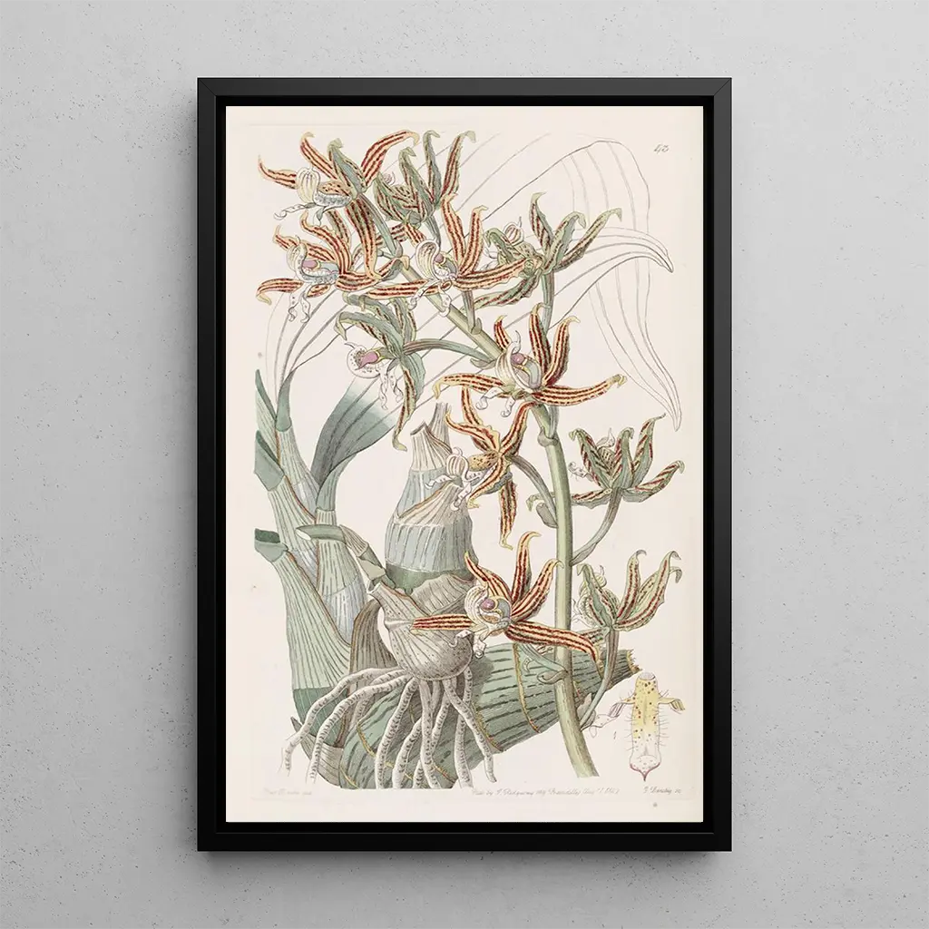 Mermodes strié : eine Tanzaufführung aus Farben und Formen Die kunstdruck von Mermodes strié ist eine wahre Ode an die natürliche Schönheit. Dieses Gemälde, reich an Nuancen, zeigt ein Spiel lebendiger Farben, das die Zartheit der Meeresmotive evoziert. Die fließenden Linien und die minutösen Details erfassen die Essenz des aquatischen Lebens und schaffen eine Atmosphäre, die sowohl ruhig als auch dynamisch ist. Die Aquarelltechnik, meisterhaft angewandt, erweckt jedes Element zum Leben und verwandelt die Leinwand in ein offenes Fenster zu einer faszinierenden Unterwasserwelt. Jeder Pinselstrich scheint eine Geschichte zu erzählen und lädt den Betrachter ein, in dieses bezaubernde Universum einzutauchen. Sydenham Edwards: ein Pionier der botanischen Illustration Sydenham Edwards, aktiv zu Beginn des 19. Jahrhunderts, gilt als einer der großen Namen der botanischen illustration. Beeinflusst von den wissenschaftlichen Entdeckungen seiner Zeit, verstand er es, Präzision und Ästhetik in seinen Werken zu vereinen. Seine Illustrationen, zu denen auch Mermodes strié gehört, zeugen von einer Epoche, in der die Natur sowohl Forschungsgegenstand als auch Inspirationsquelle für die Kunst war. Edwards trug zur Popularisierung der Botanik bei, und seine Werke wurden zu Referenzen für Wissenschaftler und Kunstliebhaber. Sein einzigartiger Stil, der Realismus und Romantik verbindet, prägte seine Zeit und beeinflusst bis heute zeitgenössische Künstler. Eine dekorative Anschaffung mit vielfältigen Vorzügen Der kunstdruck von Mermodes strié ist ein dekoratives Stück, das jeden Raum verschönern kann, sei es ein Wohnzimmer, ein Büro oder ein Schlafzimmer. Die Druckqualität garantiert eine bemerkenswerte Treue zu den Details des Originalwerks, sodass jede Nuance und Form geschätzt werden kann. Durch die Integration dieses Leinwandbildes in Ihre Dekoration verleihen Sie Ihrem Interieur einen Hauch von Eleganz und Ruhe. Die ästhetische Anziehungskraft dieses Werks macht es zu einer idealen Wahl für alle, die eine beruhigende Atmosphäre schaffen möchten und gleichzeitig die Schönheit der Natur feiern.