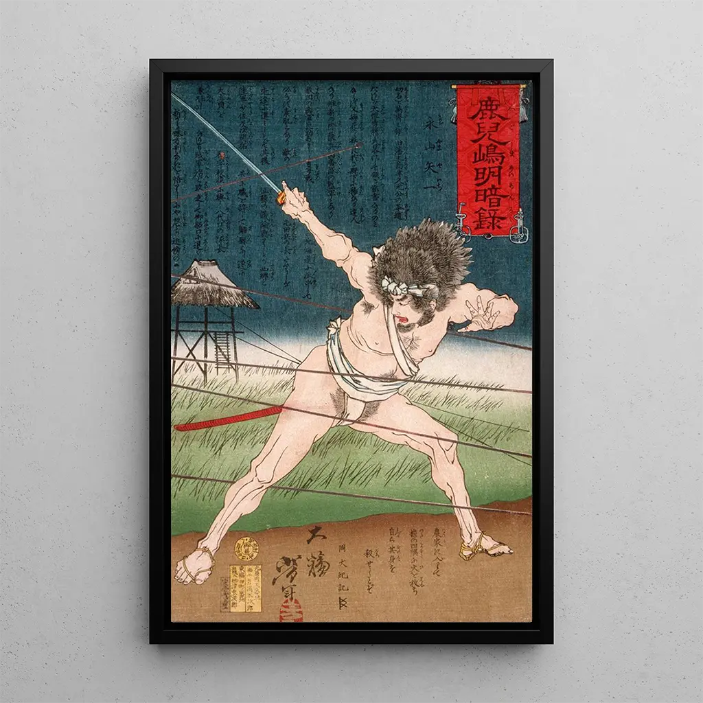 Nagayama Yaichi ausweichend den Kugeln: ein Moment des Mutes, der in der Zeit eingefroren ist In diesem eindrucksvollen Werk fängt Tsukioka Yoshitoshi einen Moment dramatischer Spannung ein, in dem Nagayama Yaichi, eine Legendenfigur, geschickt Kugeln ausweicht. Die lebendigen Farben und die auffälligen Kontraste erwecken diese Szene zum Leben, während die Technik des Ukiyo-e-kunstdruck eine bemerkenswerte Liebe zum Detail zeigt. Die Atmosphäre ist voller Energie, jedes Element der Komposition – von den fließenden Bewegungen der Figur bis zu den Lichtreflexen – evoziert einen Kampf zwischen Leben und Tod. Dieser kunstdruck des Gemäldes "Nagayama Yaichi ausweichend den Kugeln" ist eine wahre Einladung, Mut und Tapferkeit zu erkunden. Tsukioka Yoshitoshi: der Meister des japanischen kunstdrucks Tsukioka Yoshitoshi, geboren 1839, ist einer der letzten großen Meister des Ukiyo-e-kunstdrucks, einer Kunstform, die im Japan des 17. bis 19. Jahrhunderts florierte. Beeinflusst von den sozialen und politischen Umbrüchen seiner Zeit, verstand Yoshitoshi es, Tradition und Moderne in seinen Werken zu vereinen. Seine Karriere, geprägt von Phasen des Erfolgs und der Schwierigkeiten, führte zu einem einzigartigen Stil, der Realismus mit fantastischen Elementen verbindet. Dieses Werk, wie viele andere, zeugt von seiner Fähigkeit, Geschichten durch Bilder zu erzählen, und macht ihn zu einer unverzichtbaren Figur der japanischen Kunst. Eine dekorative Anschaffung mit vielfältigen Vorzügen Der kunstdruck von "Nagayama Yaichi ausweichend den Kugeln" ist eine ideale Wahl, um Ihr Zuhause zu bereichern, sei es im Wohnzimmer, im Büro oder im Schlafzimmer. Die Druckqualität garantiert eine Treue zu den Originaldetails, sodass Sie die Meisterschaft Yoshitoshis voll und ganz schätzen können. Mit seinem unbestreitbaren ästhetischen Reiz zieht dieses Kunstwerk den Blick auf sich und weckt Neugier, was es zu einem hervorragenden Ausgangspunkt für Gespräche über japanische Kunst und ihre Geschichte macht. Verleihen Sie Ihrem Raum einen Hauch von Eleganz und Exotik mit diesem ikonischen kunstdruck.
