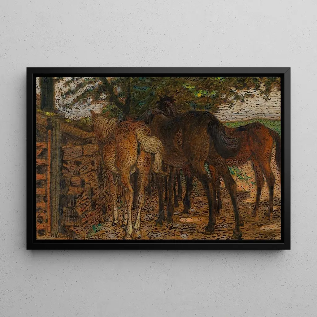 Près du mur : eine intime und poetische Lebensszene In "Près du mur" entführt uns Nils Kreuger in ein Universum voller Sanftheit und Gelassenheit. Die Komposition hebt Figuren hervor, die in ihre Gedanken vertieft sind, an eine Wand gelehnt, die als schweigender Zeuge ihres Alltags zu sein scheint. Die Pastellfarben, dominiert von Blautönen und Beigetönen, schaffen eine beruhigende, fast träumerische Atmosphäre. Kreugers Technik, die geschickt Realismus mit einem impressionistischen Touch verbindet, erweckt diese Szene zum Leben und lädt den Betrachter ein, in die Intimität dieser Figuren einzutauchen. Jedes Detail, von zarten Schatten bis zu gedämpften Lichtern, trägt zur Emotion bei, die von diesem Werk ausgeht. Nils Kreuger: ein Meister der Landschaft und des Alltagslebens Nils Kreuger, schwedischer Maler, der Ende des 19. Jahrhunderts aktiv war, ist bekannt für seine Fähigkeit, die Schönheit alltäglicher Szenen einzufangen. Beeinflusst von der impressionistischen Bewegung, entwickelt er einen Stil, der Realismus und Poesie vereint. Kreuger hat häufig die Themen Natur und menschliche Interaktionen erforscht, um flüchtige Momente zu verewigen. Seine Arbeit ist emblematisch für die Epoche, in der sich die Kunst dem Alltag zuwendet und sich von historischen oder mythologischen Motiven entfernt. Als Mitglied der Stockholmer Malschule hinterließ er ein nachhaltiges Erbe, das zeitgenössische Künstler weiterhin inspiriert. Eine dekorative Reproduktion mit vielfältigen Vorzügen Die Reproduktion von "Près du mur" ist ein dekoratives Stück, das jeden Raum bereichern kann, sei es im Wohnzimmer, Büro oder Schlafzimmer. Die Druckqualität garantiert eine bemerkenswerte Farbtreue und Detailgenauigkeit des Originalwerks, sodass man die einzigartige Atmosphäre, die es ausstrahlt, voll genießen kann. Durch die Integration dieses Bildes in Ihre Dekoration verleihen Sie Ihrem Raum einen Hauch von Eleganz und Gelassenheit. Die ästhetische Anziehungskraft dieses Leinwanddrucks macht ihn zur idealen Wahl für alle, die eine inspirierende und beruhigende Umgebung schaffen möchten, während sie die Kunst von Nils Kreuger feiern.
