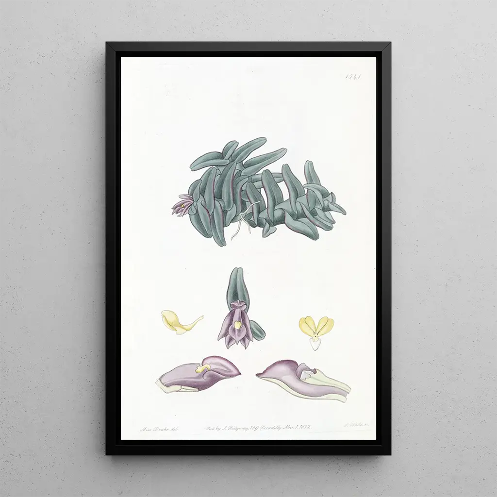 Die kunstdruck von "Nanodes pourpre" entführt uns in eine lebendige Welt, in der sich die Farben zart miteinander verweben. Die Nuancen von Violett und Rosa erblühen auf der Leinwand und schaffen eine Atmosphäre, die zugleich sanft und fesselnd ist. Die Aquarelltechnik, die von Sydenham Edwards verwendet wird, ermöglicht es, die Leichtigkeit und Transparenz der Blütenblätter wiederzugeben, während sie mit dem Licht spielt. Jedes Detail ist sorgfältig ausgearbeitet und lädt den Betrachter ein, die vergängliche Schönheit dieser Blume zu bewundern. Dieses Werk vermittelt ein Gefühl von Gelassenheit und Kontemplation, als befände man sich im Herzen eines geheimen Gartens.