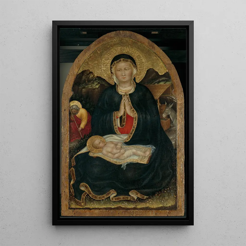 Gentile da Fabriano, ein florentinischer Maler des 15. Jahrhunderts, ist bekannt für seine Rolle in der Entwicklung des internationalen gotischen Stils. Beeinflusst von byzantinischen Traditionen und flämischen Innovationen, schuf er Werke mit großer visueller Reichtum. Die Nativité ist ein perfektes Beispiel für sein Talent, das eine harmonische Komposition mit einer sorgfältigen Detailarbeit verbindet. Seine Arbeit hat einen nachhaltigen Einfluss auf die italienische Malerei ausgeübt und den Weg für die großen Meister der Renaissance bereitet.