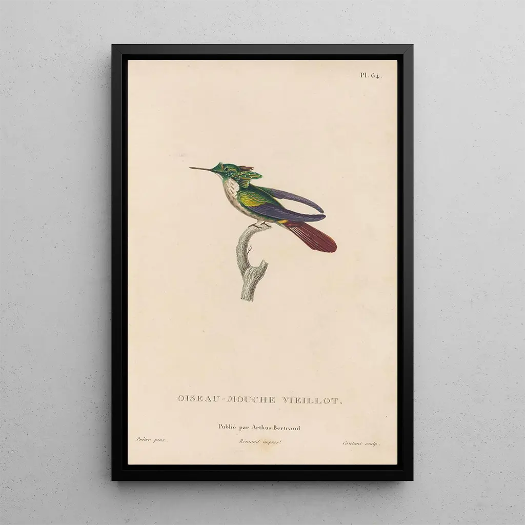 Die kunstdruck Histoire naturelle des oiseaux-mouches Pl65 lädt dazu ein, in eine lebendige und zarte Welt einzutauchen. Die kolibris, mit ihrem schillernden Gefieder, scheinen im Wind zu tanzen. Die sorgfältig ausbalancierte Komposition hebt leuchtende Töne von Grün, Blau und Gelb hervor und schafft eine fröhliche, leichte Atmosphäre. Die von René Primevère Lesson verwendete Gravurtechnik ermöglicht es, die feinen Details dieser faszinierenden Kreaturen einzufangen und ihrer vergänglichen Schönheit Tribut zu zollen. Jedes Element der Leinwand scheint zu vibrieren, als würden die Vögel unter unseren Augen lebendig werden, und bieten eine wahre Ode an die Natur.