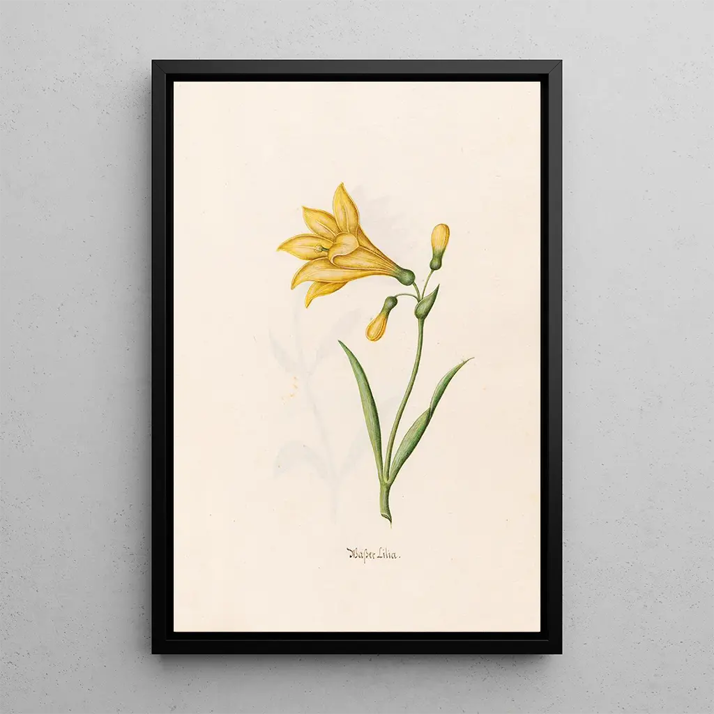 Nénuphar : ein zarter Tanz auf dem Wasser Das Kunstdruck Nénuphar von Magdalena Rosina Funck vermittelt eine aquatische Gelassenheit, bei der die Blumen anmutig an der Oberfläche eines ruhigen Wassers schweben. Die Nuancen von Grün und Blau verschmelzen harmonisch und schaffen eine ruhige, kontemplative Atmosphäre. Die Ölmaltechnik ermöglicht es der Künstlerin, das Licht einzufangen, das sich auf den Blütenblättern spiegelt und ihre Zartheit betont. Jeder Pinselstrich scheint eine Berührung zu sein, die den Betrachter einlädt, in diese blumige Welt einzutauchen. Das Werk, zugleich schlicht und raffiniert, entführt den Betrachter in einen geheimen Garten, in dem die Natur in ihrer ganzen Schönheit erstrahlt. Magdalena Rosina Funck : eine Pionierin der romantischen Blumenmalerei Magdalena Rosina Funck, aktiv im 19. Jahrhundert, ist eine ikonische Figur der romantischen Bewegung, die besonders für ihre Darstellungen der Natur bekannt ist. Beeinflusst von den großen Meistern ihrer Zeit, hat sie einen einzigartigen Stil entwickelt, der die Schönheit der Blumen und aquatischen Landschaften hervorhebt. Ihr Werk zeichnet sich durch eine sorgfältige Detailarbeit und eine lebendige Farbpalette aus. Funck hat zur Entwicklung der Blumenmalerei beigetragen, indem sie Elemente der Natur in poetische Kompositionen integriert hat. Ihr künstlerisches Erbe besteht weiter und inspiriert zahlreiche zeitgenössische Künstler, die Themen Natur und Schönheit zu erforschen. Eine dekorative Anschaffung mit vielfältigen Vorzügen Der Kunstdruck des Nénuphar ist ein dekoratives Element, das sich perfekt in verschiedene Räume einfügt, sei es im Wohnzimmer, Büro oder Schlafzimmer. Seine Druckqualität und die Treue zum Originalwerk machen ihn zur idealen Wahl für alle, die ihrer Einrichtung einen Hauch Natur verleihen möchten. Die ästhetische Anziehungskraft dieses Leinwandbildes liegt in seiner Fähigkeit, Ruhe und Schönheit zu vermitteln und so eine beruhigende Atmosphäre zu schaffen. Mit dieser Reproduktion verleihen Sie Ihrer Dekoration ein zeitloses Charmelement und feiern gleichzeitig das Talent von Magdalena Rosina Funck.