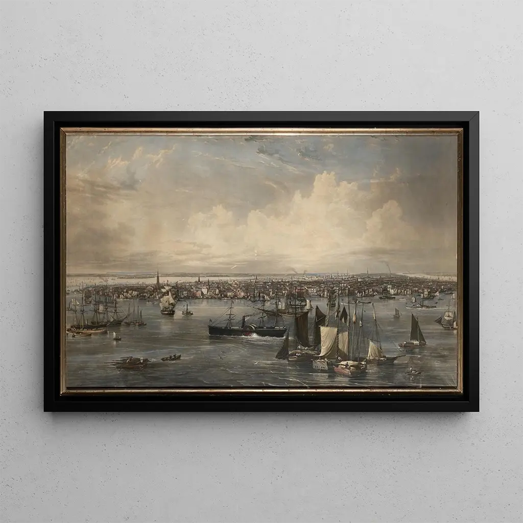 In diesem ikonischen Werk stellt John William Hill die Stadt New York mit beeindruckender Präzision dar. Das Gemälde, reich an Details, zeigt das lebendige Treiben auf den Straßen und die majestätische Architektur der Gebäude. Die leuchtenden Farben und dynamischen Kontraste vermitteln die energiegeladene Atmosphäre der Metropole, während die in Bewegung befindlichen Figuren eine menschliche Dimension zu dieser urbanen Szene hinzufügen. Die Stimmung ist sowohl modern als auch nostalgisch und fängt das Wesen einer sich ständig wandelnden Stadt ein.