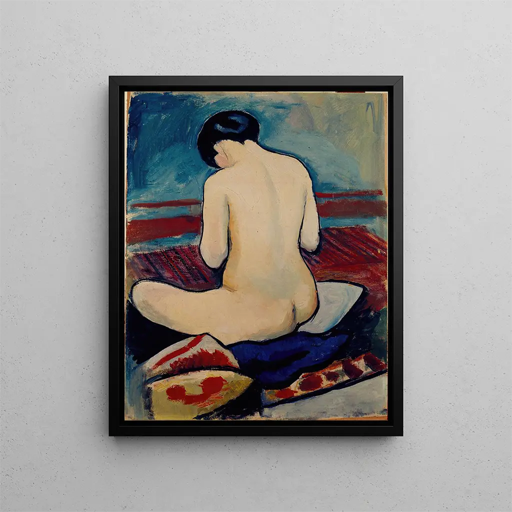 Reproduktion Nackt sitzend mit Kissen - August Macke – Fesselnde Einführung