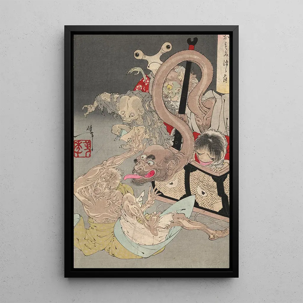 Omoi tsuzura, ein ikonisches werk von Tsukioka Yoshitoshi, ruft eine Welt tiefer Gefühle und Nostalgie hervor. Die lebendigen farben und zarten muster verweben sich zu einer atmosphäre, die zugleich melancholisch und träumerisch ist. Die komposition, reich an details, hebt figuren hervor, die den schwerpunkt ihrer emotionen tragen zu scheinen und fängt die essenz von liebe und begehrlichkeit ein. Jedes element des kunstwerks, von kleidung bis hintergrund, trägt zu einer visuellen erzählung bei, die den betrachter in ein universum voller poesie und empfindsamkeit entführt.
