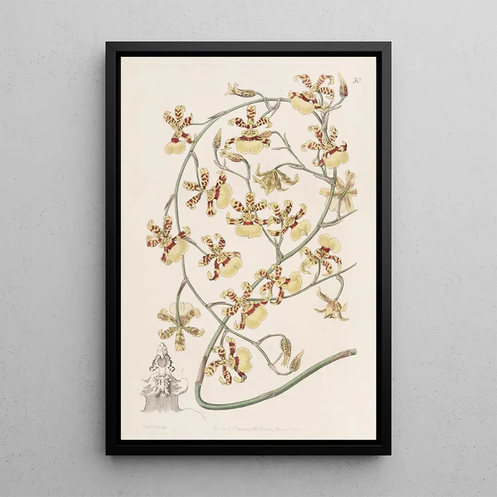 Oncidium brûlé : eine lebendige florale Tanz L'Oncidium brûlé, mit seinen zart gestreiften Blütenblättern in goldenen und braunen Nuancen, erinnert an einen lebendigen floralen Tanz. Dieses Werk von Sydenham Edwards fängt die vergängliche Schönheit dieser Orchidee ein und zeigt eine harmonische Komposition, bei der jedes Detail sorgfältig beobachtet wurde. Die warmen, erdigen Farben vermischen sich mit Lichtakzenten und schaffen eine Atmosphäre, die sowohl warmherzig als auch lebendig ist. Die Aquarelltechnik, mit ihren subtilen Farbverläufen, erweckt diese Blume zum Leben und lädt den Betrachter ein, in die Zartheit der Natur einzutauchen. Sydenham Edwards : ein Pionier der botanischen Illustration Sydenham Edwards, aktiv im frühen 19. Jahrhundert, gilt als einer der bedeutendsten botanischen Illustratoren seiner Zeit. Beeinflusst von der romantischen Bewegung, verstand er es, wissenschaftliche Präzision mit künstlerischer Ästhetik in seinen Werken zu verbinden. Seine Leidenschaft für die Botanik führte ihn dazu, zahlreiche Illustrationen für Fachwerke anzufertigen und so die Popularisierung exotischer Pflanzen in Europa zu fördern. Der Oncidium brûlé ist Teil dieser Tradition und zeugt von Edwards' Bedeutung im Bereich der botanischen Kunst sowie seiner Rolle bei der Dokumentation der Biodiversität. Eine dekorative Anschaffung mit vielfältigen Vorteilen Der kunstdruck des Oncidium brûlé ist eine ideale Wahl, um Ihre Innendekoration zu bereichern, sei es im Wohnzimmer, im Büro oder im Schlafzimmer. Seine warme Farbpalette und sein elegantes Design bringen einen Hauch von Natur und Raffinesse in jeden Raum. Die Druckqualität garantiert eine bemerkenswerte Treue zu den Details des Originalwerks, sodass Sie seine ästhetische Anziehungskraft im Alltag genießen können. Mit diesem Leinwanddruck treffen Sie die Wahl für eine Dekoration, die Schönheit, Kultur und Eleganz vereint und gleichzeitig die Vielfalt der Flora feiert.