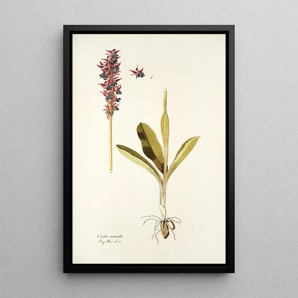 Orchis mascula : ein Hauch von Frühlingsfarbe Das Kunstwerk "Orchis mascula" von Nikolaus Joseph Freiherr von Jacquin ist eine lebendige Feier dieser Frühlingsorchidee. Das Leinwandbild zeigt eine Palette leuchtender Farben, die von zartem Rosa bis zu tiefem Violett reichen und die Frische der ersten Frühlingstage widerspiegeln. Die Präzision der Details, von den Blättern bis zu den Blüten, zeugt von sorgfältiger Beobachtung und raffinierter Technik. Die Atmosphäre, die dieses Werk ausstrahlt, ist sowohl fröhlich als auch beruhigend und lädt den Betrachter ein, die vergängliche Schönheit der Natur zu schätzen. Dieses Bild ist eine wahre Einladung, die botanischen Wunder zu entdecken. Nikolaus Joseph Freiherr von Jacquin : ein Künstler im Dienste der Wissenschaft Nikolaus Joseph Freiherr von Jacquin, im 18. Jahrhundert aktiv, verstand es, seine Leidenschaften für Kunst und Botanik zu verbinden. Als bedeutender Botaniker schuf er zahlreiche Illustrationen von Pflanzen, darunter "Orchis mascula", die sein Engagement für Wissenschaft und Ästhetik widerspiegeln. Beeinflusst von den Entdeckungen seiner Zeit, reiste Jacquin durch Europa, sammelte Exemplare und dokumentierte die florale Vielfalt. Seine Werke sind nicht nur künstlerische Zeugnisse, sondern auch wertvolle Beiträge zur Botanik und machen ihn zu einer bedeutenden Figur seiner Epoche. Eine dekorative Anschaffung mit vielfältigen Vorzügen Die Kunstdruck "Orchis mascula" ist ein dekoratives Stück, das jeden Raum bereichern wird, sei es ein Wohnzimmer, ein Büro oder ein Schlafzimmer. Die Druckqualität, die den Nuancen und Details des Originalwerks treu bleibt, macht ihn zur idealen Wahl für Liebhaber von Botanik und Kunst. Dieses Bild bringt Frische und Farbe in Ihr Zuhause und weckt gleichzeitig Interesse und Neugier. Mit seiner ästhetischen Anziehungskraft ist dieser Kunstdruck "Orchis mascula" eine wertvolle Ergänzung Ihrer Dekoration und schafft eine ruhige, inspirierende Atmosphäre.