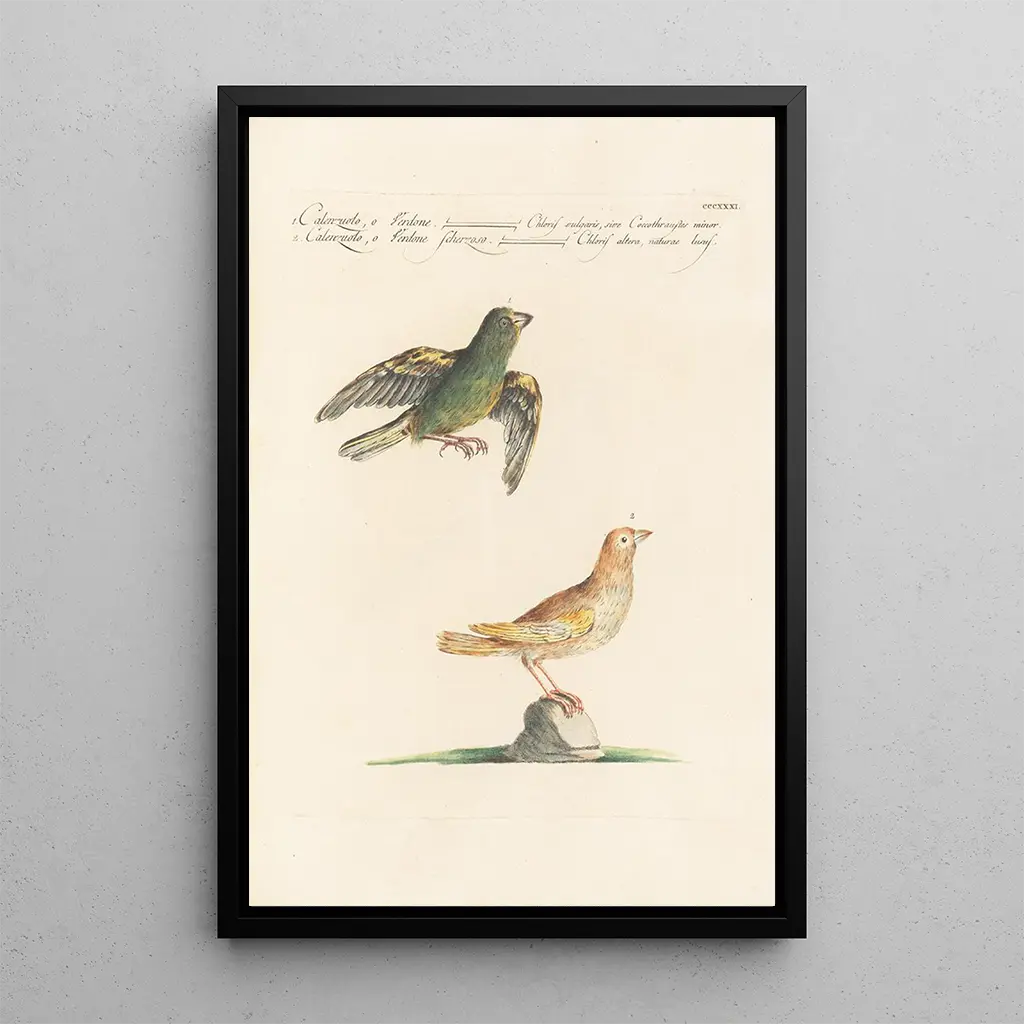 Die reproduction von Ornithologia methodice digesta Pl313 entführt uns in eine faszinierende Welt, in der die Zartheit der Vögel hervorgehoben wird. Die lebendigen Farben und die detaillierten Gefiederstrukturen schaffen eine lebendige und dynamische Atmosphäre. Jeder Vogel ist mit einer Präzision dargestellt, die auf die aufmerksame Beobachtung des Künstlers zurückzuführen ist. Die verwendete Technik, wahrscheinlich Aquarell oder Kupferstich, ermöglicht es, die Leichtigkeit und Anmut dieser geflügelten Kreaturen einzufangen, während sie gleichzeitig eine visuelle Tiefe bietet, die den Blick anzieht. Dieses Gemälde lädt zur Kontemplation und zum Staunen über die Schönheit der Natur ein.
