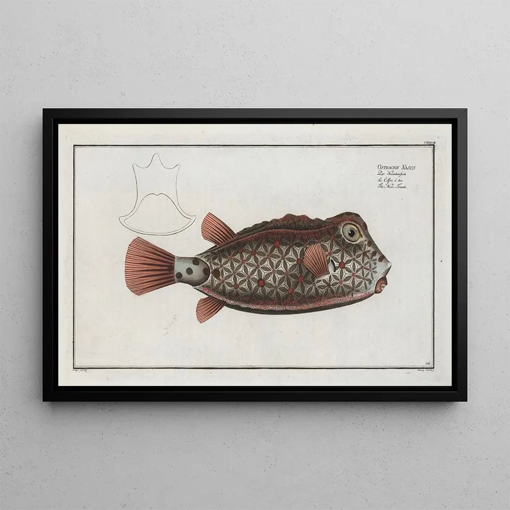 Ostracion Nasus Le Poisson-Tronc: ein Wunder der Meereswelt Das Werk "Ostracion Nasus Le Poisson-Tronc" von Marcus Elieser Bloch entführt uns in die faszinierende Welt der Ozeane. Dieses Gemälde, reich an Details, hebt die einzigartige Schönheit dieses Fisches mit geometrischen Formen und leuchtenden Farben hervor. Die lebendigen Töne von Blau, Gelb und Grün verschmelzen harmonisch und schaffen eine Atmosphäre, die sowohl lebendig als auch beruhigend wirkt. Die sorgfältig ausgeführte Gravurtechnik ermöglicht es, jede Schuppe mit bemerkenswerter Präzision darzustellen, und lädt den Betrachter ein, die Komplexität der Natur zu bewundern. Dieser kunstdruck ist eine wahre Ode an die marine Biodiversität. Marcus Elieser Bloch: der Pionier der zoologischen Illustration Marcus Elieser Bloch, Naturforscher und Illustrator des 18. Jahrhunderts, gilt als einer der Vorreiter der zoologischen Illustration. Geboren 1723 in Deutschland, widmete er sein Leben der Erforschung der Fische und veröffentlichte mehrere einflussreiche Werke, die seine Zeit prägten. Sein Stil, der wissenschaftliche Präzision mit Ästhetik verbindet, hat zahlreiche Künstler und Wissenschaftler inspiriert. Bloch reiste durch Europa, sammelte Exemplare und Wissen, die sein Werk bereicherten. Sein Beitrag zur Klassifikation der Meeresarten ist unschätzbar, und macht ihn zu einer bedeutenden Figur in der Geschichte der Kunst und Naturwissenschaften. Eine dekorative Anschaffung mit vielfältigen Vorteilen Der kunstdruck "Ostracion Nasus Le Poisson-Tronc" ist ein ideales Dekorationsstück, um Ihrem Zuhause eine elegante Note zu verleihen. Ob im Wohnzimmer, im Büro oder im Schlafzimmer, dieses Gemälde zieht den Blick auf sich und weckt die Neugier. Die Druckqualität und die Treue zu den Originalfarben garantieren eine beeindruckende ästhetische Wirkung. Mit diesem Leinwandbild entscheiden Sie sich für ein Werk, das nicht nur Ihren Raum verschönert, sondern auch Ihre visuelle Kultur bereichert. Es ist die perfekte Wahl für Kunst- und Naturliebhaber und verleiht Ihrer Dekoration eine einzigartige Dimension.