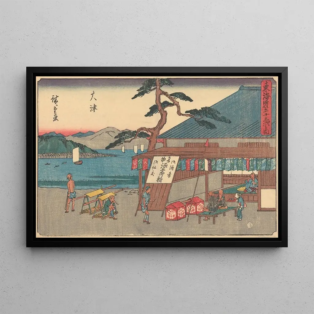 Andō Hiroshige, einer der bedeutendsten Meister der Ukiyo-e-Kunstdrucke, prägte das 19. Jahrhundert mit seinen poetischen Darstellungen der Natur und des urbanen Lebens in Japan. Beeinflusst von der künstlerischen Bewegung der Zeit, verstand er es, Tradition und Innovation zu verbinden, und schuf Werke, die die vergängliche Schönheit der Jahreszeiten und Momente des Alltags festhalten. Hiroshige reiste durch das Land, ließ sich von den Landschaften inspirieren, denen er begegnete, und "Ōtsu" ist ein perfektes Beispiel für sein Talent, die Schönheit des traditionellen Japan zu verewigen. Seine Werke inspirieren weiterhin Künstler und Kunstliebhaber weltweit.