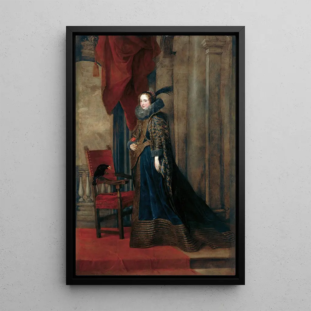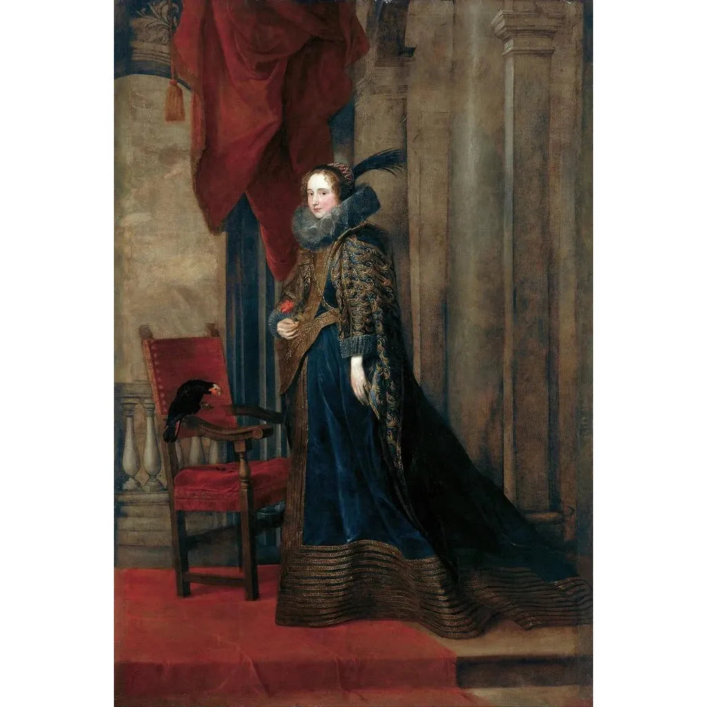 „Paolina Adorno Brignole-Sale“, gemalt von Antoine van Dyck, ist ein Porträt, das die Anmut und feminine Eleganz des 17. Jahrhunderts verkörpert. Die zarte Komposition und die sanften Farben schaffen eine ruhige Atmosphäre, während der Blick der adligen Dame sofort die Aufmerksamkeit auf sich zieht. Die Meisterschaft von van Dyck im Umgang mit Licht hebt die Texturen der Kleidung und die subtilen Details des Gesichts hervor, wodurch das Bild lebendig und fesselnd wirkt. Dieses Porträt, zugleich intim und majestätisch, lädt den Betrachter ein, in die raffinierte Welt des Adels jener Zeit einzutauchen.
