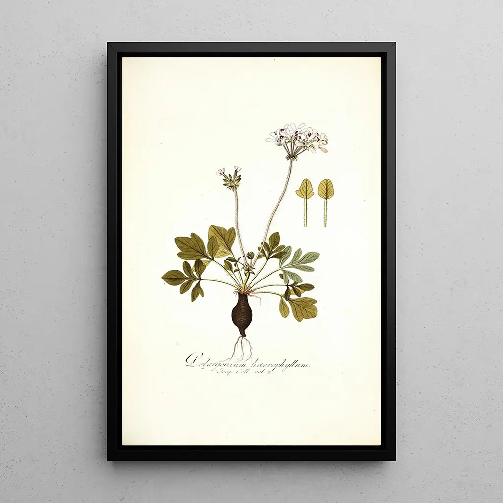 Pelargonium heterophyllum : eine Hommage an die botanische Vielfalt Das Gemälde Pelargonium heterophyllum, geschaffen von Nikolaus Joseph Freiherr von Jacquin, ist eine Feier des Reichtums der Flora. Dieses Werk, geprägt von Zartheit, zeigt Blätter in vielfältigen Formen und lebendige Farben, die das Auge fesseln. Die Aquarelltechnik, mit Feinfühligkeit angewendet, ermöglicht es, die Transparenz der Blütenblätter und die Textur der Blätter wiederzugeben, wodurch eine Atmosphäre entsteht, die sowohl lebendig als auch beruhigend ist. Jedes Detail ist sorgfältig beobachtet, was die Leidenschaft für die Botanik und den Wunsch, die Schönheit der Natur zu teilen, widerspiegelt. Nikolaus Joseph Freiherr von Jacquin : ein Pionier der botanischen Illustration Nikolaus Joseph Freiherr von Jacquin, österreichischer Botaniker und Künstler des 18. Jahrhunderts, spielte eine entscheidende Rolle bei der Entwicklung der botanischen Illustration. Beeinflusst von den wissenschaftlichen Entdeckungen seiner Zeit, reiste er durch Europa und die Karibik, sammelte Exemplare und stellte sie mit bemerkenswerter Präzision dar. Seine Arbeit trug zum Verständnis der Pflanzenarten und ihrer Klassifikation bei. In einer Zeit, in der die Botanik im Aufschwung war, verstand es Jacquin, Kunst und Wissenschaft zu verbinden, und hinterließ ein nachhaltiges Erbe, das weiterhin Botaniker und Künstler inspiriert. Eine dekorative Anschaffung mit vielfältigen Vorzügen Der kunstdruck des Gemäldes Pelargonium heterophyllum ist ein ideales Dekorationsstück für verschiedene Räume, sei es im Wohnzimmer, im Büro oder im Schlafzimmer. Seine Druckqualität und seine Treue zu den Originalfarben machen ihn zu einer attraktiven Wahl für alle, die die Schönheit der Natur schätzen. Durch das Hinzufügen dieses Leinwandbildes zu Ihrer Dekoration bringen Sie einen Hauch Frische und Eleganz in Ihr Zuhause und feiern gleichzeitig die botanische Kunst. Dieses Bild lädt zur Betrachtung und Flucht ein und verwandelt Ihr Interieur in einen wahren Garten der Bewunderung.