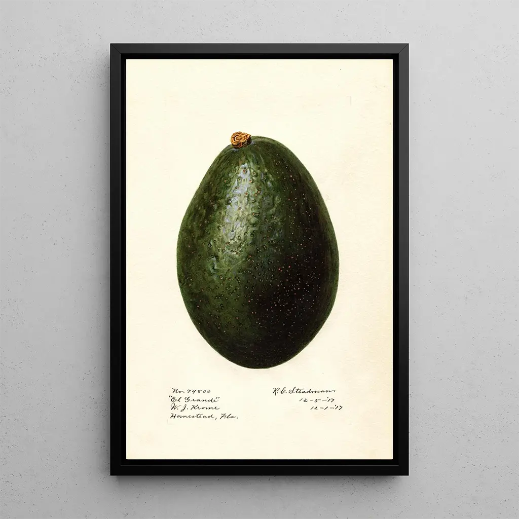 Persea El Grande : eine Hommage an die Schönheit der Natur Die kunstdrucke Persea El Grande ist eine lebendige Feier des Avocadobaums, eines emblematischen Baumes mit üppigem Laub und schmackhaften Früchten. Die reichen und tiefgründigen Farben dieses Werks rufen die Wärme der Tropen hervor, während die Technik von Royal Charles Steadman die feinen Details der Blätter und Zweige betont. Jedes Element des Gemäldes wirkt lebendig und versetzt den Betrachter in einen üppigen Garten, in dem die Natur erblüht. Dieses Werk lädt zur Kontemplation und Wertschätzung der natürlichen Schönheit ein, die uns umgibt. Royal Charles Steadman : ein Pionier der botanischen Malerei Royal Charles Steadman, aktiv zu Beginn des 20. Jahrhunderts, hinterließ einen unauslöschlichen Eindruck in der Welt der botanischen Kunst. Beeinflusst von den künstlerischen Bewegungen seiner Zeit, verstand er es, wissenschaftliche Präzision mit künstlerischer Sensibilität zu verbinden. Seine Werke, oft geprägt von Realismus, zeugen von einer aufmerksamen Beobachtung der Natur und einer Leidenschaft für die Botanik. Durch die Darstellung exotischer Pflanzen wie des Avocadobaums trug Steadman dazu bei, das Publikum für die Schönheit und Vielfalt der Pflanzenwelt zu sensibilisieren, und wurde so zu einem unverzichtbaren Künstler seiner Epoche. Eine dekorative Anschaffung mit vielfältigen Vorzügen Der kunstdruck Persea El Grande ist ein dekoratives Stück, das frischen Schwung in Ihr Zuhause bringt. Ob im Wohnzimmer, Büro oder Schlafzimmer – dieses Bild schafft eine warme und einladende Atmosphäre. Die Qualität des Kunstdrucks garantiert eine bemerkenswerte Treue zu den Details des Originalwerks, verbunden mit einem unbestreitbaren ästhetischen Reiz. Mit dieser Leinwand entscheiden Sie sich für eine Dekoration, die Ihren Raum bereichert und gleichzeitig die Schönheit der Natur sowie die Kunst der botanischen Malerei feiert.