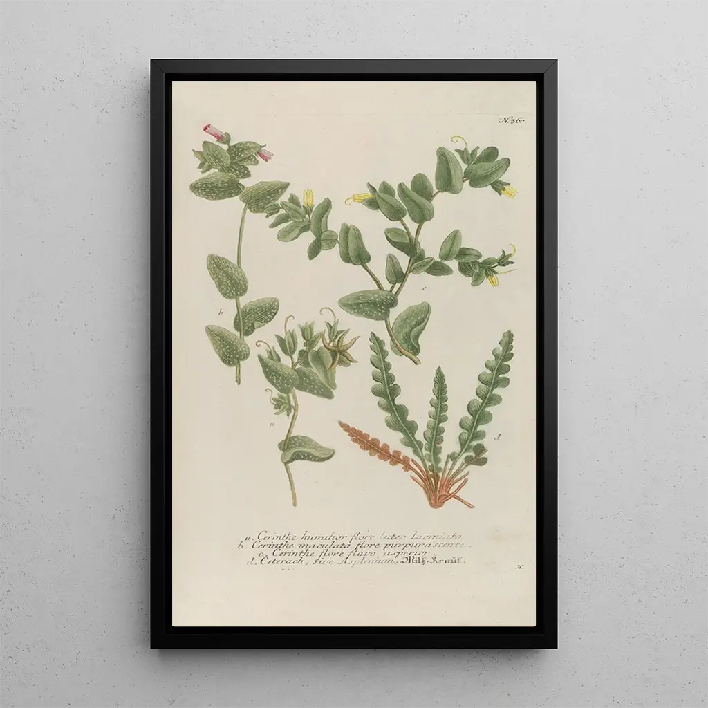 Phytanthoza iconographia Pl083 : eine Hommage an die florale Vielfalt Die kunstdruck von Phytanthoza iconographia Pl083 entführt uns in einen üppigen Garten, in dem jede Blume ein Kunstwerk für sich ist. Johann Wilhelm Weinmann, mit seinem unvergleichlichen Talent, fängt die Schönheit und Vielfalt der Pflanzen durch leuchtende Farben und beeindruckende Details ein. Dieses Werk veranschaulicht perfekt die Harmonie der Natur, in der jedes Element sorgfältig angeordnet ist, um eine ausgewogene Komposition zu schaffen. Die Atmosphäre, die von diesem Gemälde ausgeht, ist sowohl beruhigend als auch inspirierend, lädt zur Betrachtung ein und weckt Bewunderung für die Pracht der Pflanzenwelt. Johann Wilhelm Weinmann: ein Meister der botanischen Kunst Johann Wilhelm Weinmann, aktiv im 18. Jahrhundert, gilt als einer der Pioniere der botanischen Illustration. Seine Leidenschaft für Pflanzen und sein Wunsch, sie präzise darzustellen, führten ihn dazu, Werke zu schaffen, die Wissenschaft und Ästhetik verbinden. In einer Zeit, in der die Botanik an Bedeutung gewann, konnte Weinmann die Essenz der Pflanzenarten mit beeindruckender Realitätsnähe einfangen. Seine Illustrationen, insbesondere die Serie Phytanthoza iconographia, sind zu Referenzen für Botaniker und Künstler geworden und zeugen von der Bedeutung seines Erbes in der Welt von Kunst und Wissenschaft. Eine dekorative Anschaffung mit vielfältigen Vorzügen Der kunstdruck von Phytanthoza iconographia Pl083 ist ein dekoratives Stück, das jeden Raum verschönern wird. Ob im Wohnzimmer, im Büro oder im Schlafzimmer, diese Leinwand bringt Frische und Farbe in Ihren Raum. Die Druckqualität garantiert eine Treue zu den Originaldetails und würdigt das Werk von Weinmann. Mit der Wahl dieses kunstdrucks treffen Sie eine Entscheidung für eine elegante und bereichernde Dekoration, die die Sinne anspricht und die Bewunderung Ihrer Gäste weckt. Dieses Werk ist mehr als nur ein Gemälde, es ist eine Einladung, die Schönheit der Natur im Alltag zu feiern.