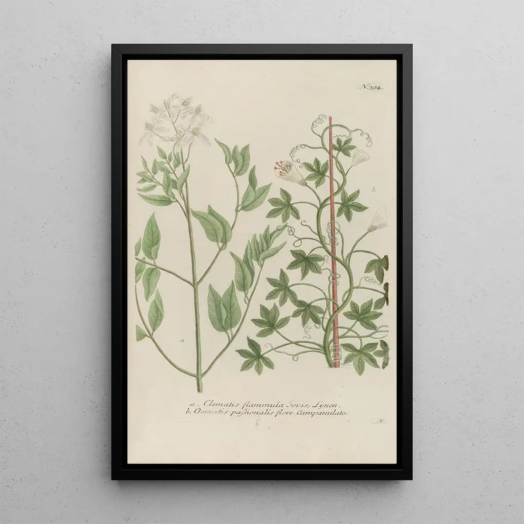 Die kunstdruck von Phytanthoza iconographia Pl117 entführt uns in eine Welt, in der die Natur mit bemerkenswerter Präzision in Szene gesetzt wird. Die lebendigen Farben der Pflanzen, sorgfältig detailliert, vermitteln eine Atmosphäre von Gelassenheit und Staunen. Die von Johann Wilhelm Weinmann verwendete Gravurtechnik ermöglicht es, jeden Farbton, jede Textur einzufangen und würdigt die Schönheit der Flora. Dieses Gemälde, eine wahre Ode an die Botanik, lädt zur Betrachtung und Wertschätzung der Wunder der Pflanzenwelt ein.