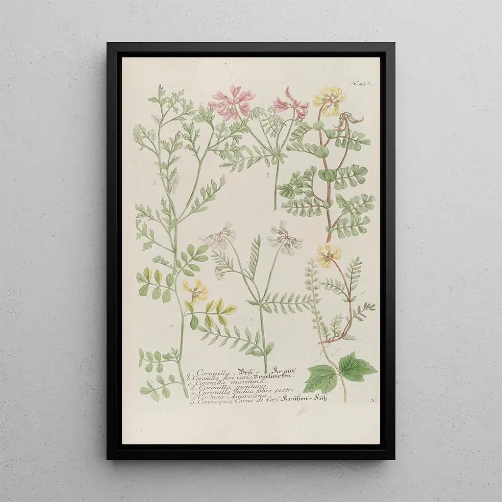 Die kunstdrucke von Phytanthoza iconographia Pl153 entführen uns in eine reiche und farbenfrohe botanische Welt. Die detaillierten Darstellungen der Pflanzen, mit bemerkenswerter Präzision wiedergegeben, wecken eine Atmosphäre der Entdeckung und des Staunens. Die lebendigen Farbtöne, von strahlendem Grün bis zu zarten Nuancen von Rosa und Gelb, schaffen eine harmonische Komposition, die den Blick anzieht. Dieses Werk, sowohl wissenschaftlich als auch künstlerisch, lädt dazu ein, die Schönheit der Natur zu erkunden und bietet gleichzeitig eine enzyklopädische Sicht auf die Pflanzenarten.