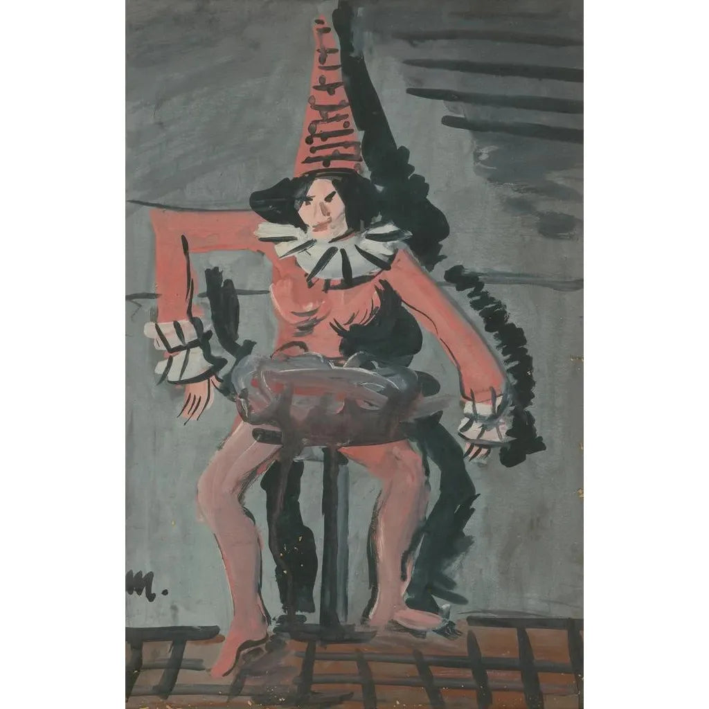 Cyprian Majernik, polnischer Maler, hat es im 20. Jahrhundert geschafft, sich in der Kunstwelt durch seinen einzigartigen Stil zu etablieren, der Einflüsse des Surrealismus und des Symbolismus vereint. Ausgebildet an den Kunstschulen Warschaus, wurde er von den Turbulenzen seiner Zeit geprägt, insbesondere den Kriegen und sozialen Umbrüchen. Sein Werk, oft introspektiv, spiegelt seine existenziellen Sorgen und sein Interesse an der menschlichen Bedingung wider. "Pierrot" ist Teil einer Serie von Werken, in denen er die Themen Isolation und Selbstfindung erforscht, was ihn zu einem unverzichtbaren Künstler macht, um menschliche Emotionen durch Kunst zu verstehen.