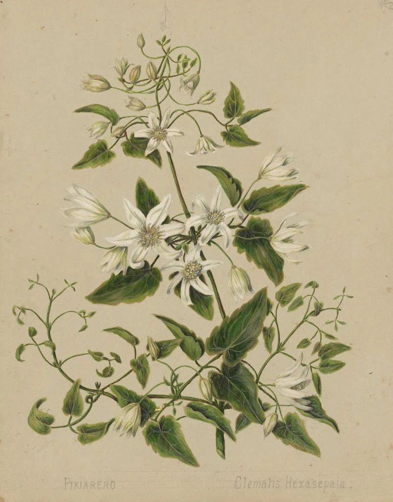 In 'Pikiarero Clematis hexasepala' bietet Sarah Featon eine poetische Sicht auf eine typische Kletterpflanze Neuseelands. Ihre Illustration zeichnet sich durch detaillierte Feinheiten und eine Palette sanfter Farben aus, die die Zartheit dieser Art hervorrufen. Als botanische Künstlerin hat Featon das Wesen der lokalen Flora eingefangen und dabei ein ästhetisches Empfinden integriert, das die reine Darstellung übertrifft. Dieses Werk zeugt vom Engagement Featons für die Botanik und ihrem Wunsch, die Schönheit ihrer Umgebung zu teilen. In einem zeitgenössischen Rahmen kann diese Illustration einen Hauch von Natur und Eleganz verleihen und zur Ruhe einladen. Der Kunstdruck dieses Werks ist bei Artem Legrand erhältlich.